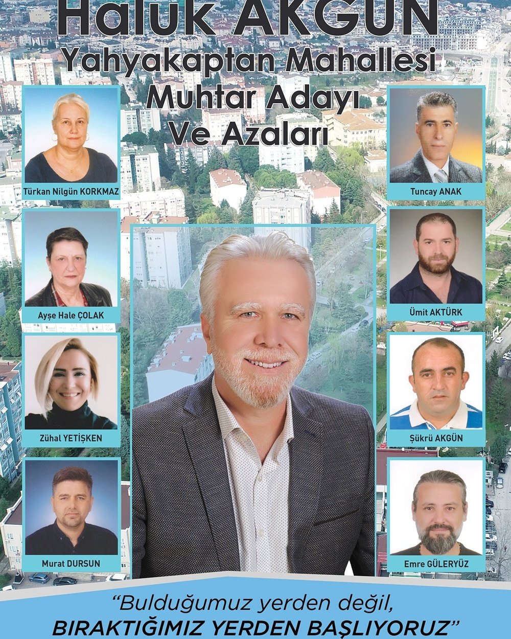 Siyasete ara vererek muhtar adayı olan “İzmit Belediye Meclis Üyesi Haluk Akgün, “Siyasi kimliğimi bir kenara bırakıp muhtar adayı oldum. Sevgi, saygı ve hoşgörü ile mahalle sakinlerimizin istek ve taleplerini yerine getireceğim. Hizmetin devamlılığı için mahalle muhtarlığına talibim. Benim tek kavgam mahalleme olan hizmet kavgası olur onun dışında kimse ile bir işim olmaz beni tanıyan tanır. İki dönem muhtarlık hizmetinde bulundum ve bir dönem meclis üyeliği yaptım. Hep başım dik gezdim. Yahya Kaptan bölgenin en seçkin mahallelerinden biri. Bu bölgenin insanlara hizmet etmeyi seviyorum” diye konuştu.