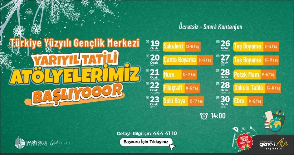 Atölyeler hakkında detaylı bilgi almak isteyen veliler veya öğrenciler, Başiskele Belediyesi’nin 444 41 10 numaralı çağrı merkezini arayabilecek.