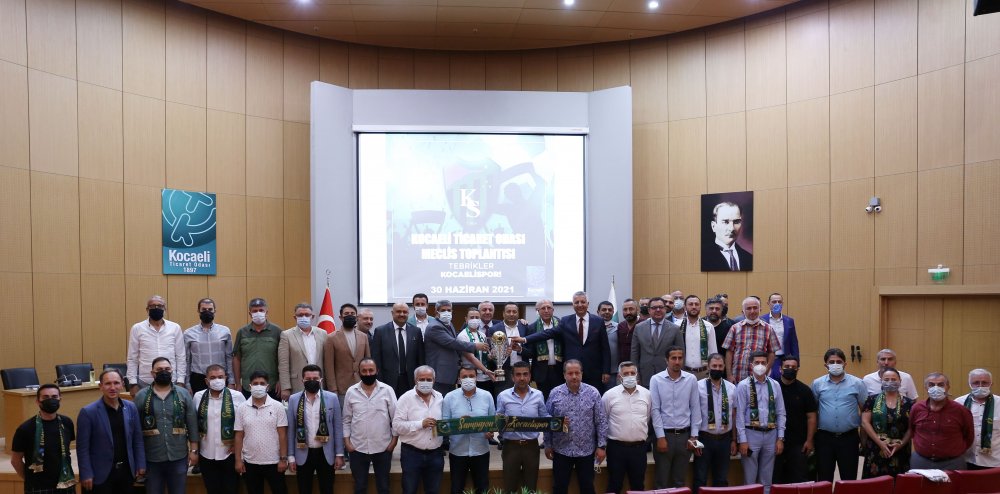 TFF 1. Lig’e yükselen gururumuz Kocaelispor’un şampiyonluğu Kocaeli Ticaret Odası Meclisi’nde bir kez daha kutlandı. KOTO Meclisi’nin konuğu olan Kocaelispor Başkanı Engin Koyun, Kocaeli Ticaret Odası Başkanı Necmi Bulut, Meclis Başkanı Akın Doğan ve Meclis Üyeleri ile birlikte şampiyonluk kupasını bir kez daha kaldırdı.