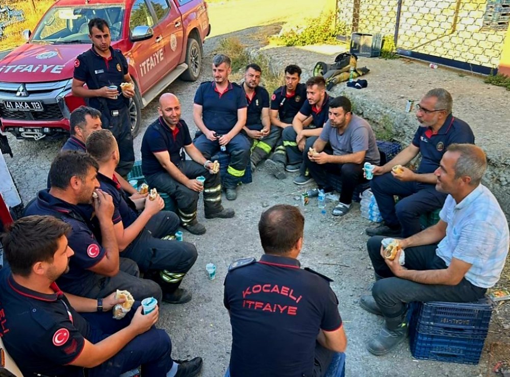 Başkan Tahir Büyükakın, Karamürsel yangınında canla başla çalışan kahramanları unutmadı, o anları yorgunluktan bitkin düşmüş iki itfaiye erinin kurtardığı ağaç gölgesinde serinlediğini gösteren fotoğrafla anlattı. Bu görüntü sosyal medyada büyük ilgi gördü.