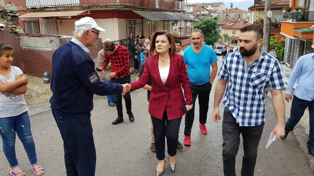 İzmit Belediye Başkanı Fatma Kaplan Hürriyet, yoğun yağış sonucunda istinat duvarı çöken Bekirdere Mehmet Çağlar Sokak’ta incelemelerde bulundu.