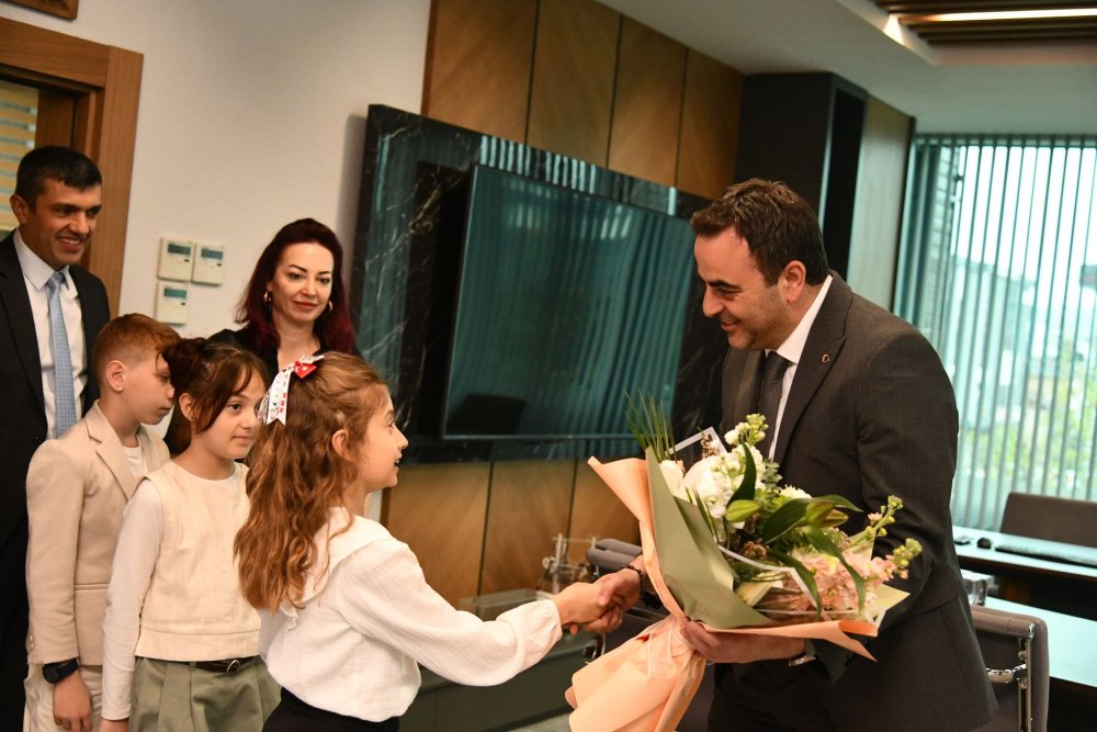 “Dünyanın ilk ve tek çocuk bayramı olan 23 Nisan’da, başkanlık koltuğunu geleceğin emanetçilerine devrettik. Melisa Seki, bugün koltuğumuzu devralarak bizlere umut ve heyecan verdi.”