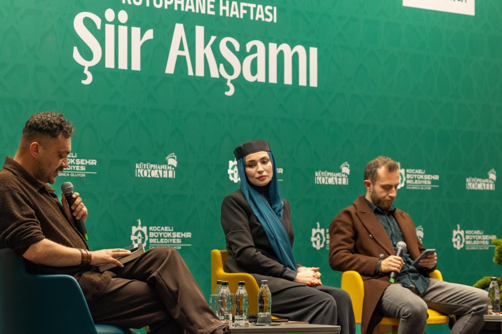 Kocaeli Büyükşehir Belediyesi, Kütüphane Haftası dolayısıyla “Yaşamak, Umut, Bahar” temalı “Şiir Akşamı” düzenledi. İzmit Millet Bahçesi Sanat Galerisi’ndeki programda Kocaeli Büyükşehir Belediye Başkanı Tahir Büyükakın da şairleri yalnız bırakmadı. Şiir dolu bir akşamın yaşandığı programa sanatseverlerin ilgisi son derece yüksekti. Büyükşehir Belediyesi Başkan Vekili Berna Abi ve AK Parti Kocaeli İl Gençlik Kolları Başkanı Doğan Orak’ın da katıldığı Şiir Akşamı’nda Zeynep Arkan, Gökçe Özel, Raşit Ulaş ve Samed Karataş, kendi kaleme aldıkları şiirleri seslendirdi.