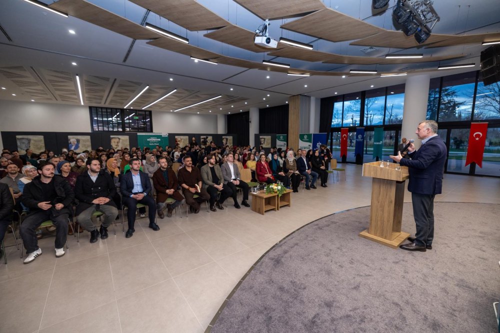 Başkan Büyükakın çok müstesna bir toplulukla bir araya gelmekten duyduğu memnuniyeti dile getirerek başladığı konuşmasında, şehirleri sadece altyapısıyla değil; kültür, sanat ve düşünce dünyasıyla birlikte inşa ettiklerinin altını çizdi. Sanat Galerisi ile yanındaki Alev Alatlı Kütüphanesi’nin bu anlayışın ürünü olduğunu belirten Büyükakın şunları söyledi: “Biliyoruz ki şehirleri biz kurarız, ama o şehirler de bizi inşa eder. Kütüphanelerimizden sanat alanlarımıza kadar attığımız her adım; aklı ve gönlü birlikte büyüten, geleceğe iz bırakan bir anlayışın yansımasıdır.
