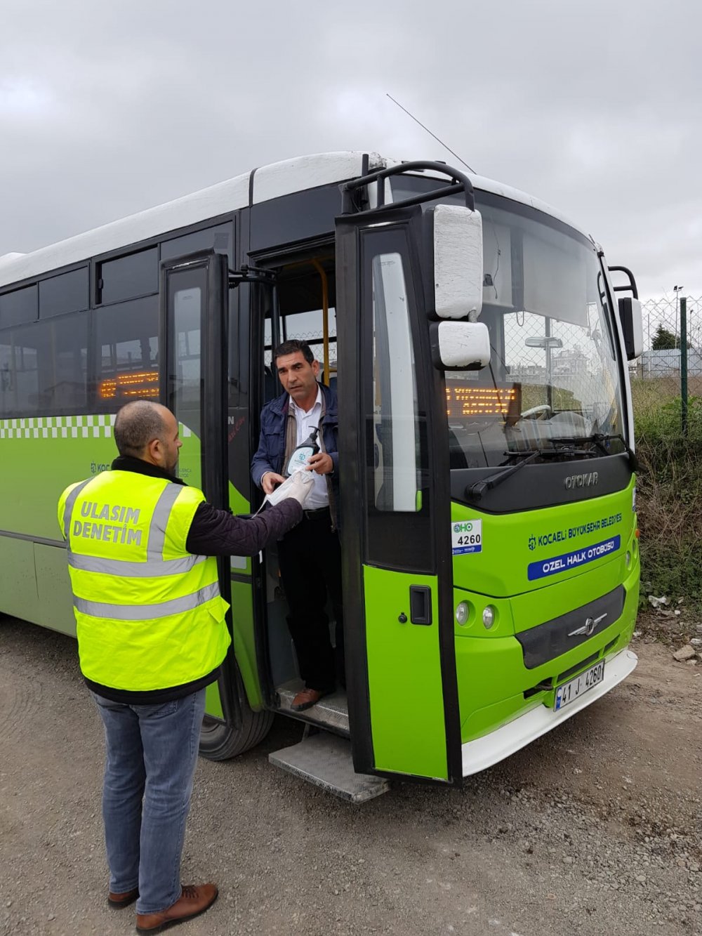 Vatandaşlarımız otobüse binerken rahatlıkla ellerini dezenfekte edebilecek. Salgın riskine karşı otobüs şoförlerinin korunması ve daha rahat çalışabilmeleri için de, şoförlere maske dağıtıldı. Büyükşehir Belediyesi tarafından Kocaeli genelindeki tüm kooperatiflere bağlı 2 bin toplu taşıma aracı için dezenfekte ve maske temin edildi.