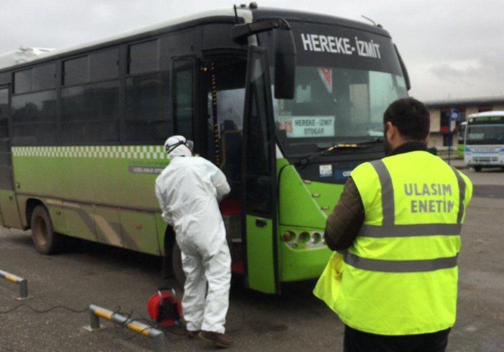 Büyükşehir Belediyesi, dünya genelini etkisi altına alan koronavirüs salgınına karşı il genelinde aldığı önlemleri artırıyor. Bu hizmetler kapsamında Ulaşım Hizmetleri Dairesi Başkanlığı Toplu Taşıma Şube Müdürlüğü, özel halk otobüsleri için çalışma başlattı. Toplu taşımada belediye otobüslerinin yanı sıra özel halk otobüsleri de Kocaeli Büyükşehir Belediyesi’nce dezenfekte ediliyor.