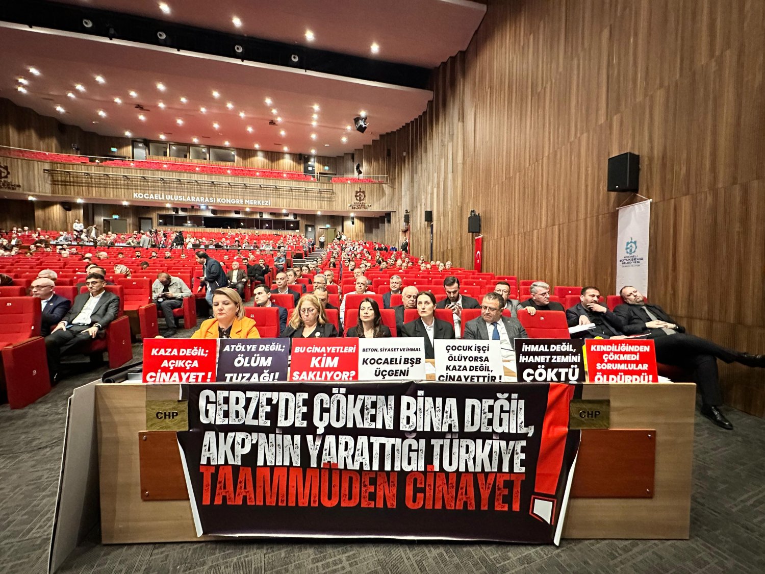 Kocaeli Büyükşehir Belediyesi Kasım ayı meclisi Kocaeli Kongre Merkezi’nde Tahir Büyükakın başkanlığındaugerçekleştirildi. Cumhuriyet Halk Partisi’nin üyeleri meclis öncesi CHP sıralarına dev pankart açarak, Gebze ve Dilovası’nda meydana gelen olaylarda toplam 10 kişinin hayatını kaybetmesine tepki gösterdi. Pankartta “Gebze’de çöken bina değil, AKP’nin yarattığı Türkiye taammüden cinayet!” ifadeleri yer aldı.