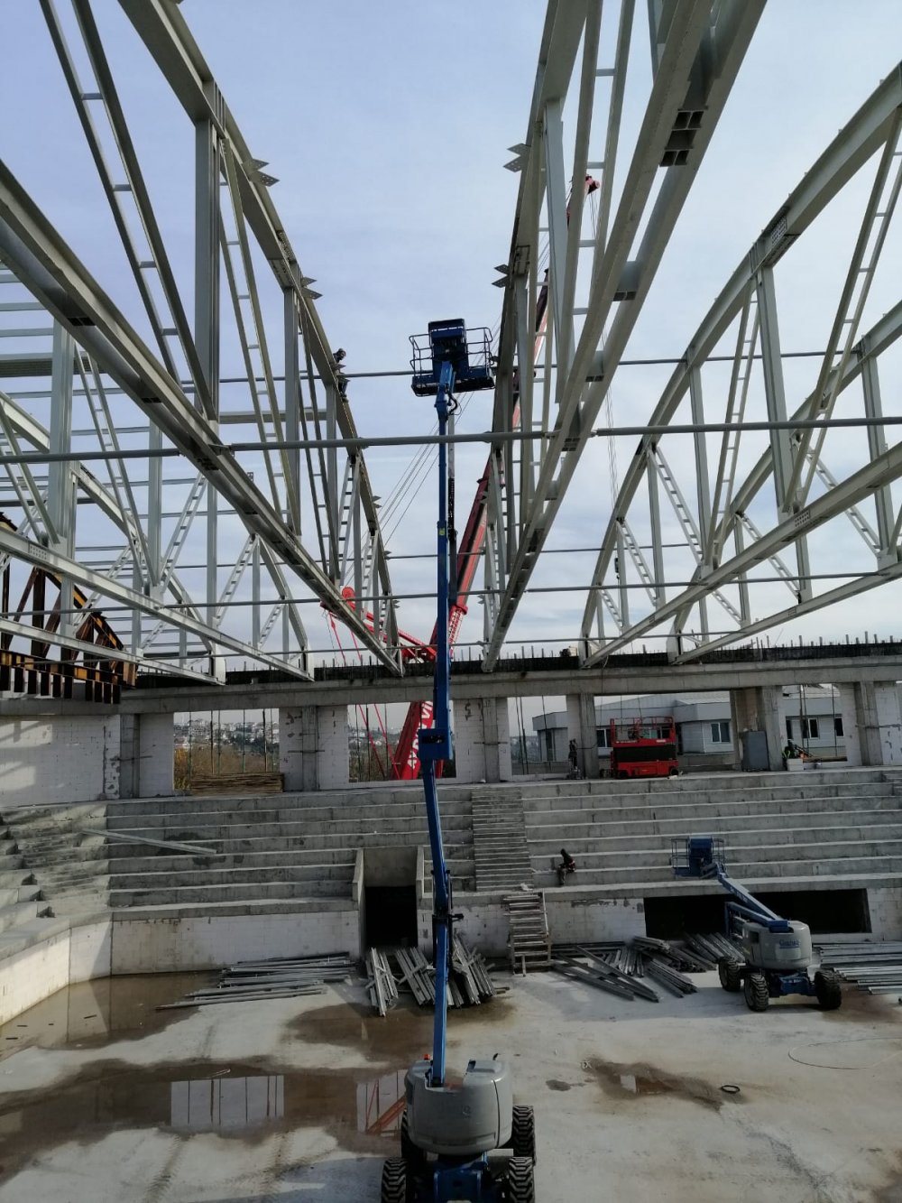 Spor kenti Kocaeli yolunda emin adımlarla projelerini bir bir hayata geçiren Kocaeli Büyükşehir Belediyesi, Darıca’da dev bir spor salonu inşa ediyor. Geçtiğimiz haftalarda 1800 kişilik tribün imalatlarını tamamlayan Büyükşehir ekipleri, çelik çatının montajına başladı. Çelik çatının makaslarını da yerlerine koyacak olan ekipler, kaba sıva imalatlarına devam ediyor. Ahşap çatı karkas işine de başlayan ekipler, mekanik imalatlarını sürdürüyor.