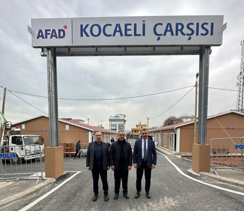 Başkan Büyükakın ile İl Başkanı Talus, Kocaeli Valiliği’nin Kahramanmaraş’ta kurduğu Kocaeli Çarşısı’nda Vali Yavuz ile bir araya geldi. 7 blok ve 50 iş yerinden oluşan ve 18 gün gibi kısa bir sürede tamamlanan çarşıyı dolaşıp, esnafa hayırlı işler dileyen Başkan Büyükakın, bölgedeki üstün gayretleri nedeniyle Kocaeli Valisi Yavuz’a başarılar diledi. Deprem bölgesinde ticari hayatın canlanması için atılan bu adımın büyük değer taşıdığını vurgulayan Başkan Büyükakın, incelemelerinin ardından Hatay Defne’de Kocaeli Büyükşehir’in kurduğu çadır kent, hastane ve konteyner kentte incelemelerde bulunacak ve burada kalan vatandaşlarla iftar açacak.