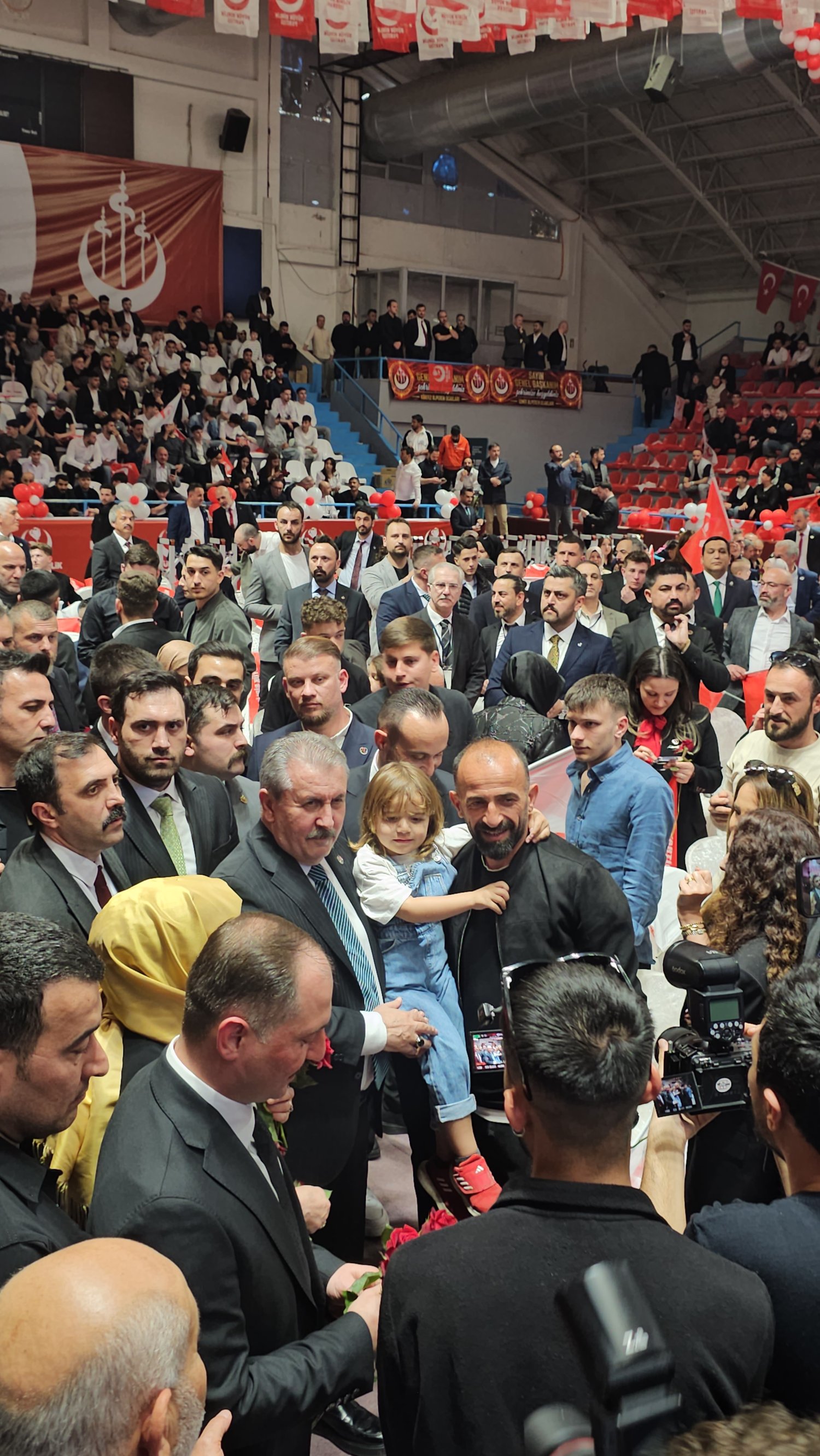 Kongre salonu önünde toplanan partililer, Destici’yi çiçeklerle karşıladı. Alkışlar ve sloganlar eşliğinde salona giren Destici’ye sevgi gösterileri uzun süre devam etti. Yoğun ilgi nedeniyle salonda kısa süreli hareketlilik yaşanırken, görevliler düzenin sağlanması için yoğun çaba harcadı.