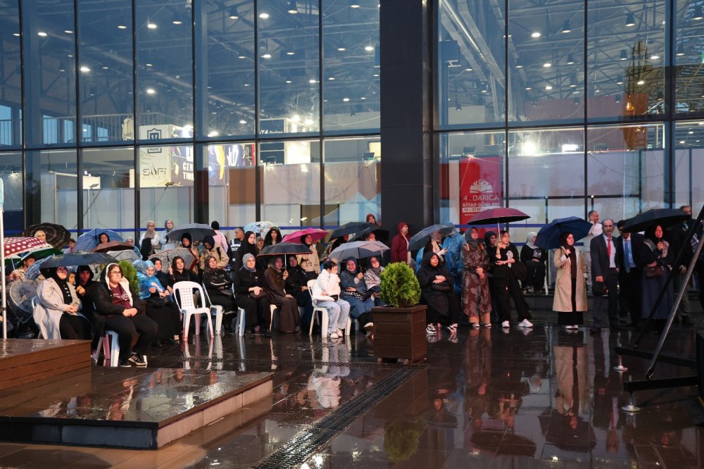 Kocaeli Kongre Merkezi Akçakoca Salonu’na sığmayan vatandaşlar, konuşmacı Bekir Develi’yi koridorlarda ve dış alanda kurulan dev ekranda yağmur altında takip etti.
