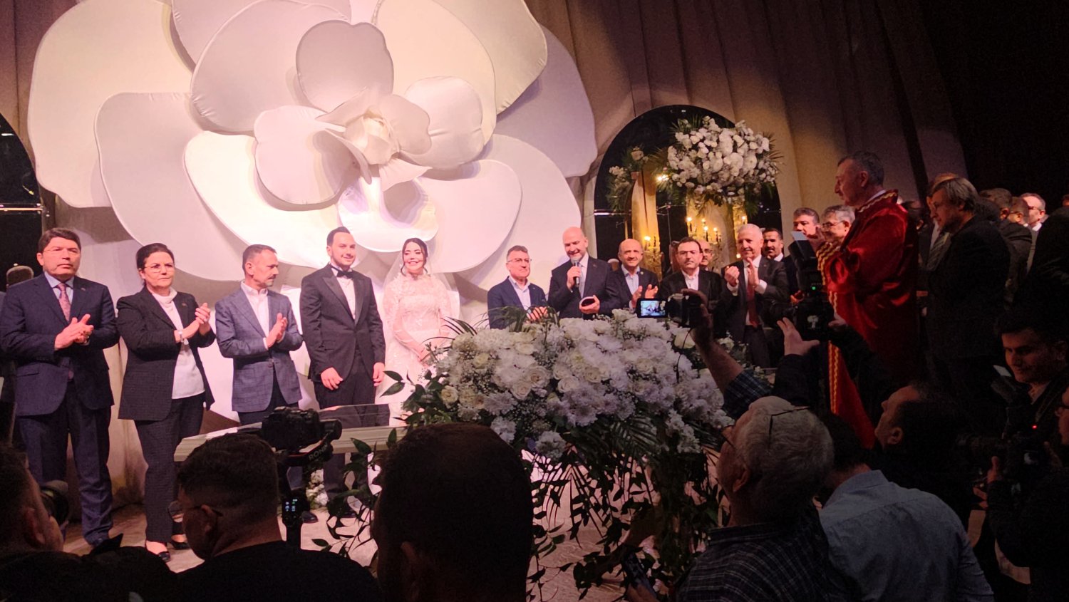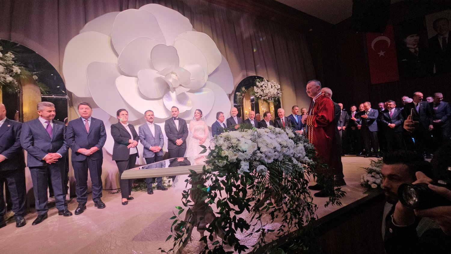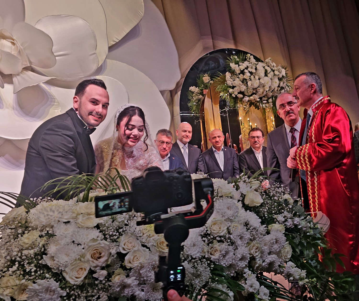 Kocaeli Kongre Merkezi’nde gerçekleştirilen nikâh törenine, Kocaeli protokolünün yanı sıra devlet protokolünün yoğun katılımıyla adeta büyük bir buluşmaya sahne oldu.Türkiye’nin dört bir yanından gelen siyasetçi, bürokrat ve iş dünyasının önde gelen isimleri, bu özel gün için Kocaeli’ne akın etti.