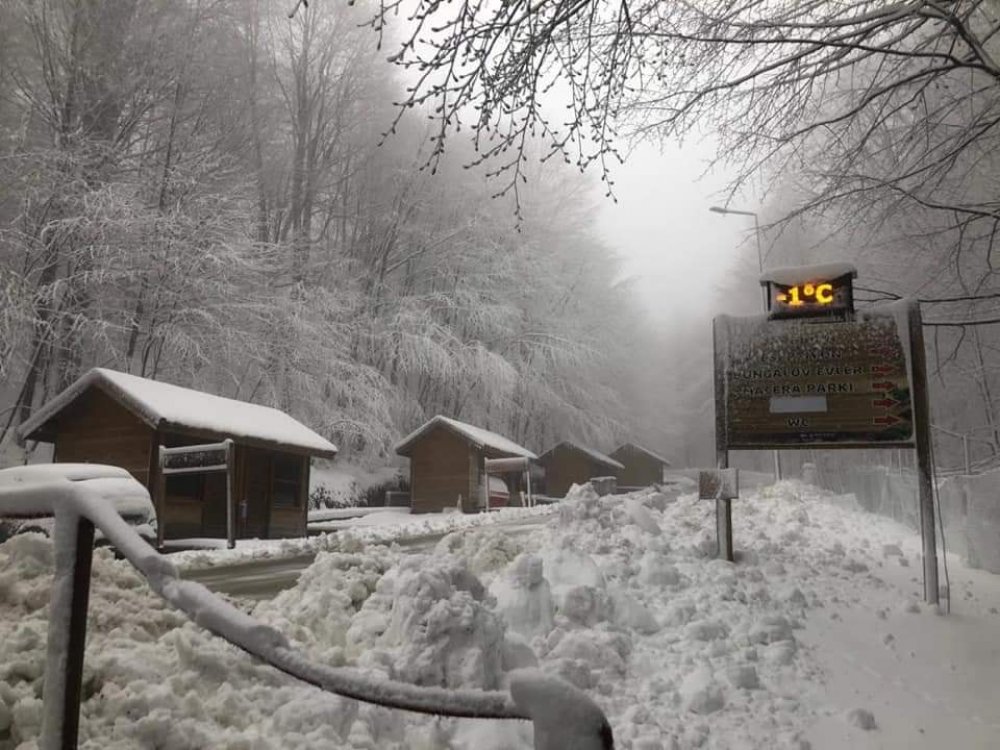 Mart ayında olduğumuz şu günlerde hava sıcaklarının bir anda düşmesiyle birlikte, Gölcük’ün en yüksek noktası olan Gölcük Belediyesi Eriklitepe Tabiat Parkı’nda kar yağdı.