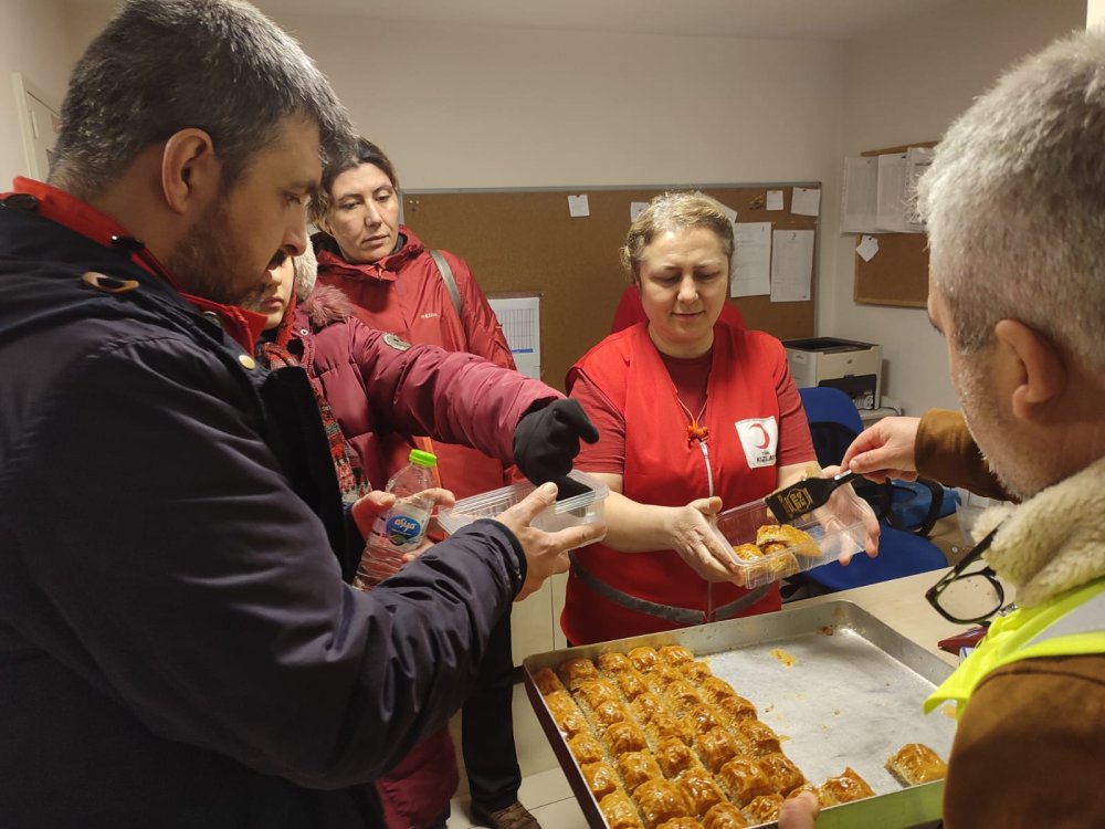Kahramanmaraş merkezli meydana gelen deprem sebebiyle 10 ilde adeta yıkım yaşandı. Depremin ardından ülkece seferber olan tüm iller, yardım kampanyalarına başladı. Gıdadan giyime, sağlık ekipmanından hijyen ürünlerine kadar toplanan yardımlar depremzedelere ulaştırdı. Hala yardım kolileri gönüllü vatandaşlar tarafından afet koordinasyon merkezlerinde toplanarak deprem bölgelerine ulaştırılıyor. Bu süreçte gönüllü olarak çalışan vatandaşlar da çok yoruldu. Kocaeli Tokatlılar Derneği Başkanı Turan Şahin ve Usta Eller Baklavalarının sahibi Yusuf Kara gönüllülere baklava ikramı yaptı.