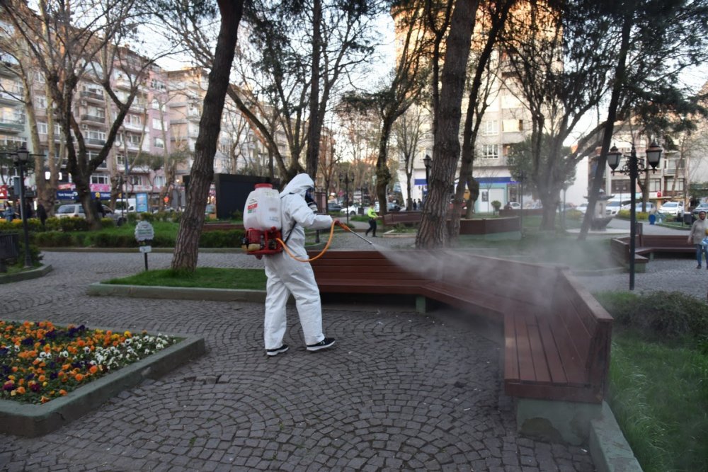 İzmit Belediyesi ekiplerinin titizlikle yürüttüğü çalışmalar ilçe genelinde gündüz ve gece boyunca devam etti. Sterilize kıyafetler giyerek ilaçlama çalışması yapan ekipler, çalışmalar kapsamında vatandaşların yoğun olarak kullandığı Sabri Yalım Parkı, Yeni Cuma Parkı, Özcan Tengiz Parkı ve İzmit’in birçok noktasında bulunan çocuk oyun alanları, kamu binaları, belediye araçları ve camileri ilaçladı. Geçtiğimiz Cuma günü başlayan çalışmalar, hafta sonu boyunca devam ederken, dezenfekte çalışmalarının sürdürüleceği belirtildi.