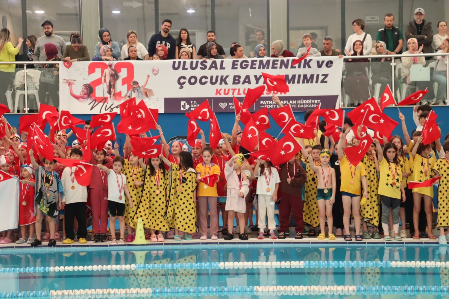 İzmit Belediyesinin düzenlediği 23 Nisan Ulusal Egemenlik ve Çocuk Bayramı etkinliklerine spor müsabakaları damga vurdu. Milli Bayramları coşkuyla kutlamaya devam eden İzmit Belediyesi, 23 Nisan Ulusal Egemenlik ve Çocuk Bayramı etkinlikleri kapsamında Kapalı Yüzme Havuzunda yüzme yarışı düzenlendi.