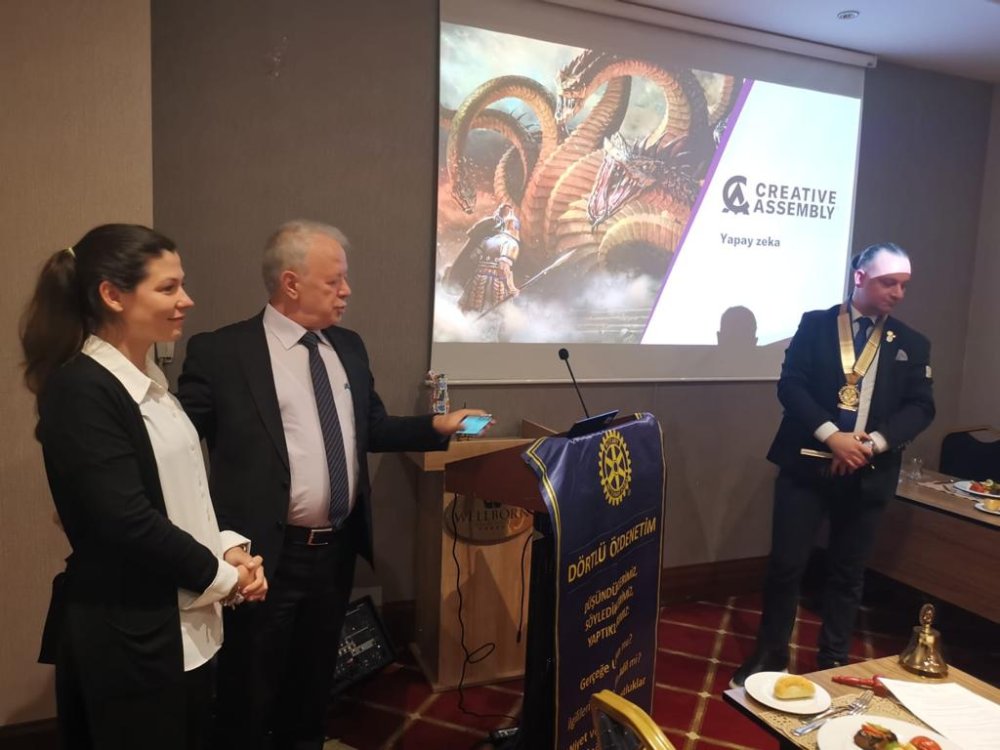 İzmit Rotary Kulübü, bu haftaki toplantısında yapay zekâ yöneticisi Duygu Çakmak’ı konuk etti. Toplantıda Duygu Çakmak rotaryenlere yapay zekâ konulu paylaşımlar yaptı.