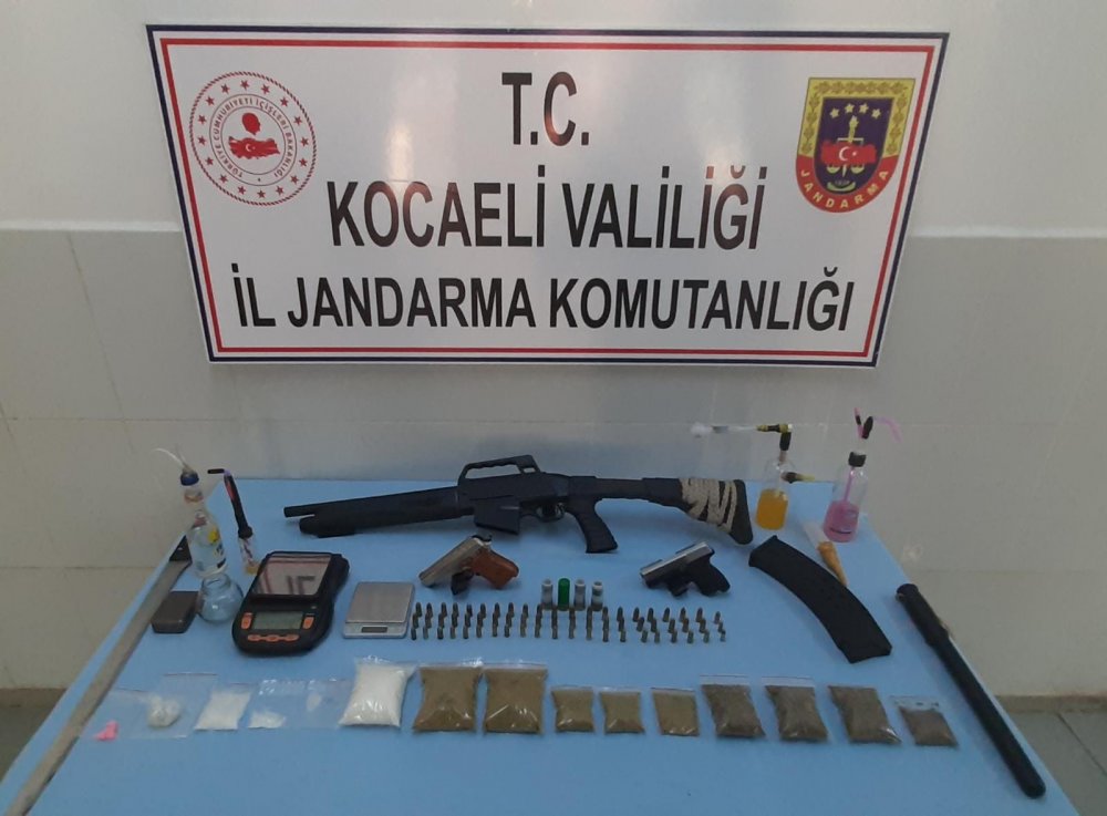 Uyuşturucu imal ve ticaretinin önlenmesine yönelik Kocaeli İl Jandarma Komutanlığınca çalışmalar aralıksız sürüyor. Yapılan istihbari çalışmalar sonucu İzmit'te şüpheli 4 dört şahsın evlerinde ve araçlarında ekipler tarafından aramalar yapıldı. Aramalar neticesinde; 1 kilo 372 gram kubar esrar, 188 gram metamfetamin, 86 gram bonzai, 4 adet ecstasy, 3 kök kenevir bitkisi, 2 adet ruhsatsız tabanca, 1 adet ruhsatsız av tüfeği, 2 adet 7,65 mm tabanca şarjörü, 63 adet 7,65 mm tabanca fişeği, 4 adet av tüfeği fişeği, 1 adet kesici delici alet, 4 adet hassas elektronik terazi, 4 adet uyuşturucu madde kullanma aparatı ve 188 gram kenevir tohumu ele geçirildi. Olayla ilgili olarak yakalanan 4 şahıs, ifadeleri için Jandarma Komutanlığı'na götürüldü. Burada işlemleri tamamlanan şahıslar Kocaeli Adliyesi'ne sevk edildi.