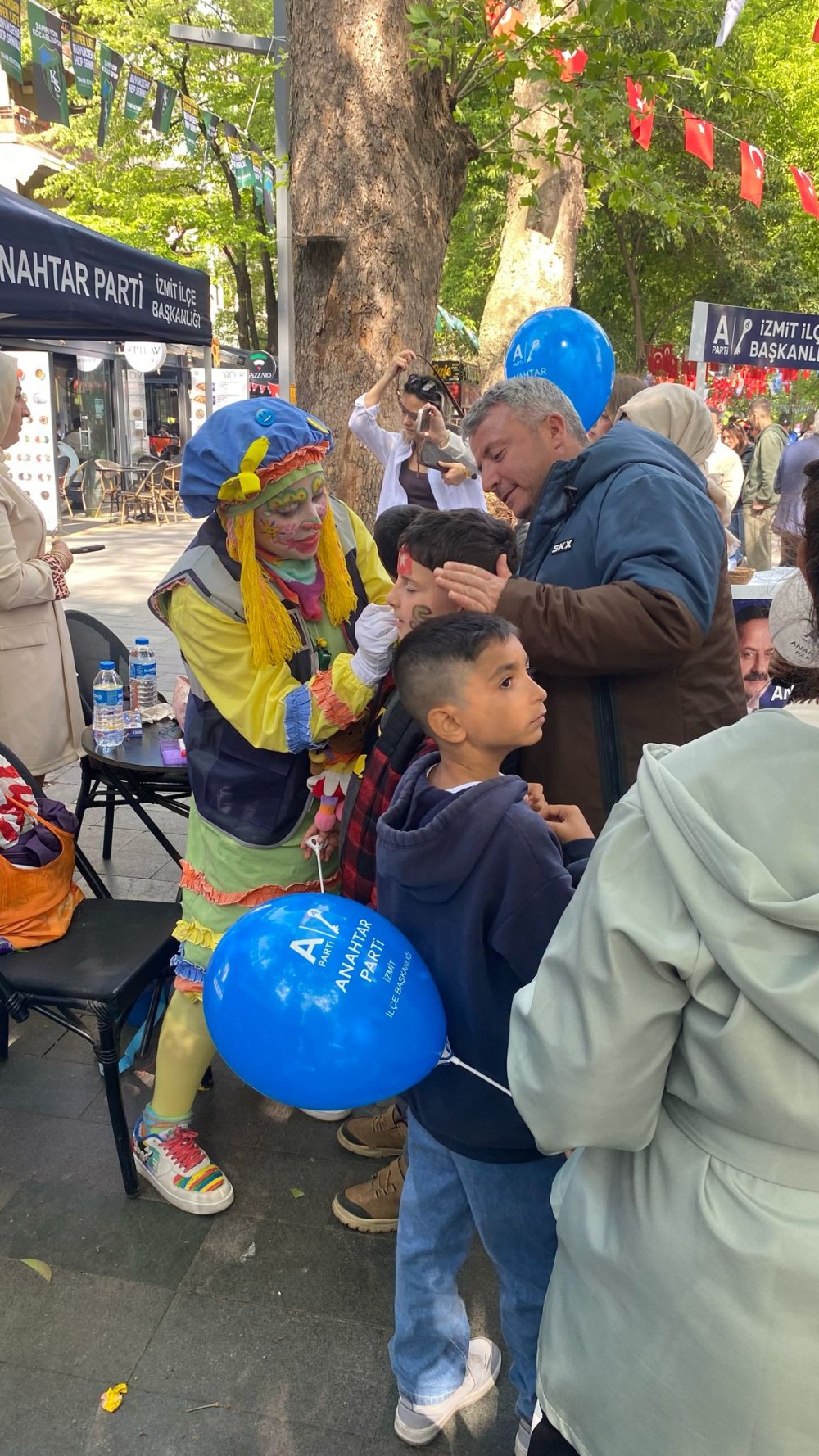 ANAHTAR Parti İzmit İlçe Başkanlığı, Cumhuriyet Bulvarı (Yürüyüş Yolu) üzerindeki Ulugazi İlkokulu önünde çocuklar için renkli bir bayram alanı oluşturdu. Etkinlikte palyaçoların neşeli gösterileri, yüz boyama etkinlikleri ve teknolojik oyuncak robotlar sayesinde adeta bir çocuk şenliği yaşandı. Titizlikle planlanan programda çocuklara balonlar dağıtıldı, yüzleri bayram coşkusunu yansıtan motiflerle boyandı. Rengârenk kıyafetli palyaçoların sergilediği gösteriler minikleri kahkahaya boğarken, interaktif robotlarla tanışan çocuklar teknolojiyle iç içe keyifli anlar geçirdi. Etkinlik boyunca yöneticiler çocuklarla yakından ilgilenerek onları mutlu etmek için büyük çaba gösterdi. Bayraklarla süslenen etkinlik alanında çocuklar marşlar söyleyip oyunlar oynarken, aileler de bu özel günde çocuklarıyla birlikte olmanın mutluluğunu yaşadı. İlçe Başkanı Ömer Özkan da çocuklarla yakından ilgilenerek balonlar dağıttı ve onlarla sohbet edip hayallerini öğrenmeye çalıştı.