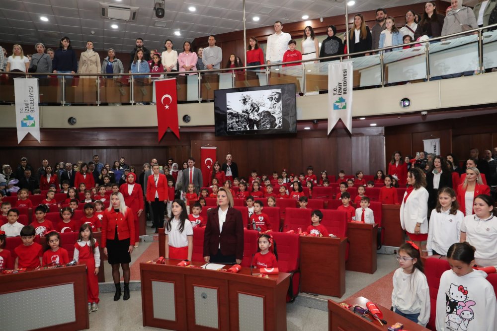 İzmit Belediyesinde 23 Nisan coşkusu bu yıl da çocukların sesiyle yankılandı. Minik öğrenciler meclis sıralarına oturarak hem yönetti hem de kente dair önemli kararlar aldı.
