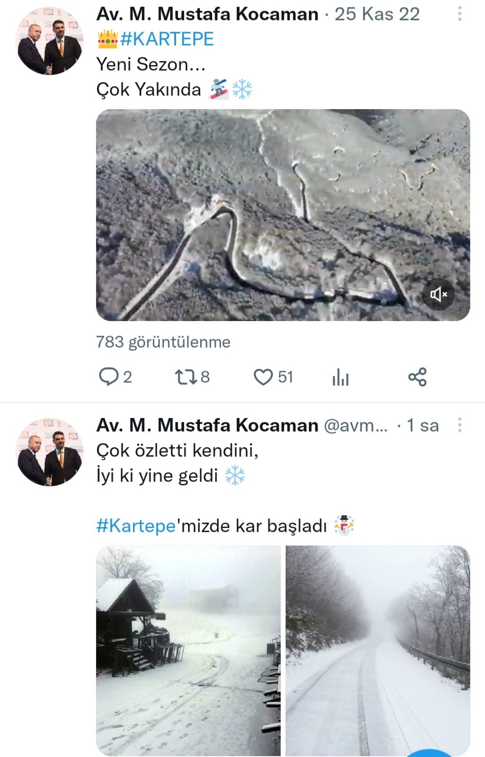 Kartepe’de etkili olması beklenen kar yağışı, dün akşam saatleri itibarı ile zirvede yapmaya başladı. Kartepe, 2023 yılının özlenen beyaz örtüsünü il kez bugün giydi. Kış turizminin önemli merkezlerinden Kartepe'nin zirvesinde beklenen kar yağışını Kartepe Belediye Başkanı Mustafa Kocaman 'Çok özletti kendini, İyi ki yine geldi' sözlerine yer vererek Kartepe’den özlenen kar manzaralarını paylaştı.