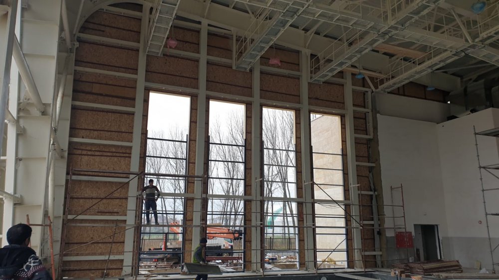 Yapının çevre düzenleme işlerine başlayacak ekipler, havuz içi yan cephelerin iç yeşil alçıpan kaplamaları ve havuz seramik kaplama imalatlarına başladı. Çatı ve cephe kenet imalatlarına devam eden ekipler ayrıca tüm mahallelerde ahşap kapı ve kasaların montajını tamamlamak için hummalı şekilde çalışıyor. Havuz cephesinin alüminyum doğrama montajlarının da yapılığı yapının tüm mahallerin paslanmaz korkuluk imalatlarına başlanacak. Bodrum kat mekanik imalatlarına da devam edilen yapının tüm ıslak hacimlerinde hilton lavabo montajları yapılıyor.