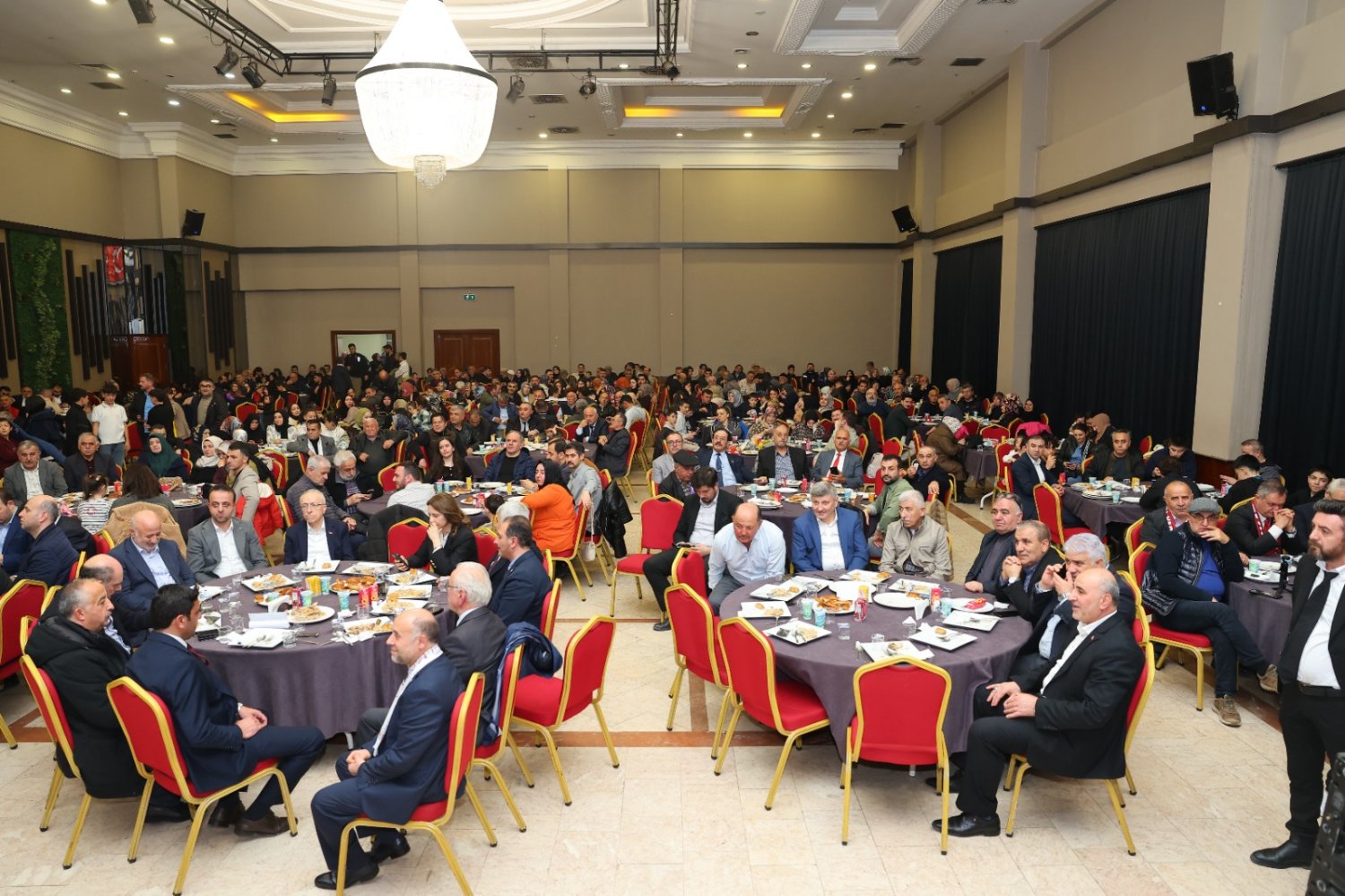 Körfez’in en büyük salonlarından biri olmasına rağmen, yoğun katılım karşısında salon yetersiz kaldı. Çok sayıda vatandaş programı ayakta izlemek zorunda kalırken, bazı katılımcılar salon dışına taşan kalabalıkla programı takip etti.