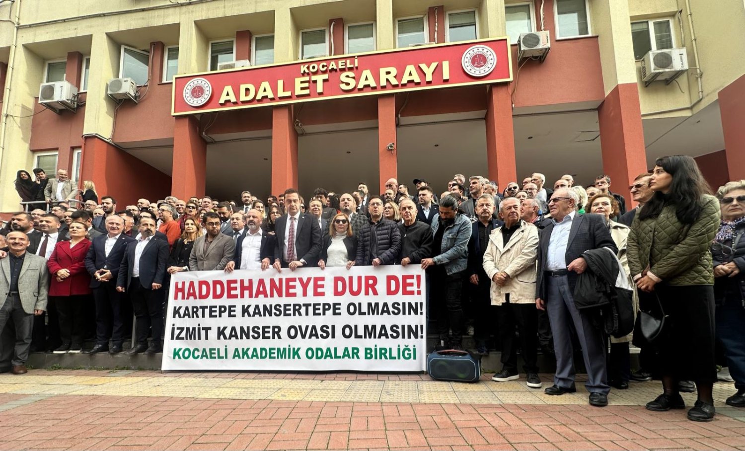 TMMOB bileşenleri, Kocaeli Barosu ve Kocaeli Tabip Odası’nın yer aldığı Akademik Odalar Birliği; siyasi partiler, çevre dernekleri ve vatandaşların katılımıyla Kocaeli Adliyesi önünde açıklama yaptı. Birlik, turizmin kalbi Kartepe’de ağır sanayi kurulmasının akla ve bilime aykırı olduğunu vurguladı. Açıklamada konuşan Harita Mühendisleri Odası Başkanı ve Akademik Odalar Birliği Dönem Sözcüsü Cuma Özdemir, davanın sonuna kadar takipçisi olacaklarını ifade etti.