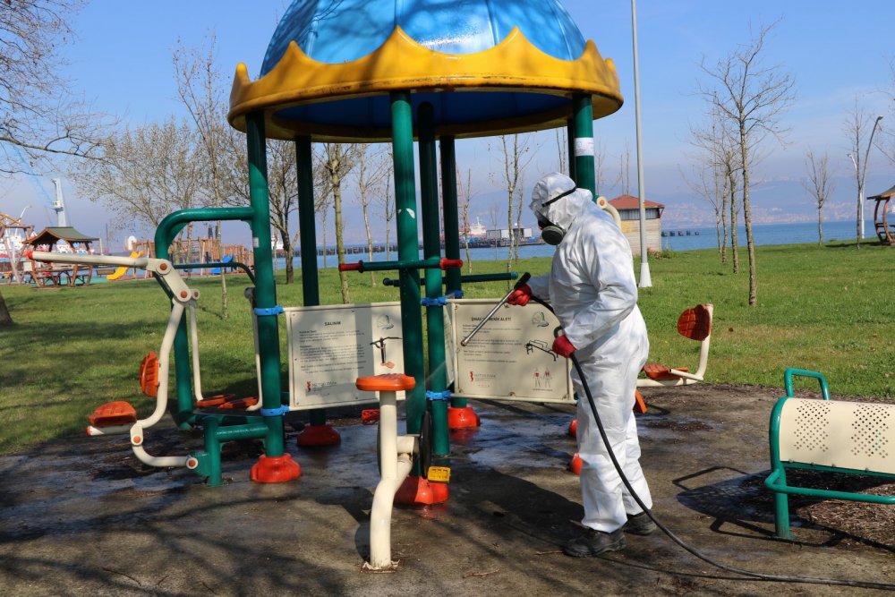 Çin’in Vuhan şehrinde ortaya çıkan ve tüm dünyada büyük paniğe neden olan koronavirüsden Kocaeli Büyükşehir Belediyesi ekipleri, sokak, cadde ve kalabalığın yoğun olduğu bölgelerde dezenfekte işlemlerine tüm hızıyla devam ediyor. Bu kapsamda sahada dezenfeksiyon işlemi uygulayan 70 personel 22 araçla, kamu, kurum ve kuruluş binaları ile bahçelerini ve vatandaşların yoğun olarak kullandığı alanları dezenfekte etmeye gece gündüz devam ettiriliyor. Ekipler, günlük yaklaşık 1 milyon metrekare alanı dezenfeksiyon yapabilecek kapasite hazırlandı.