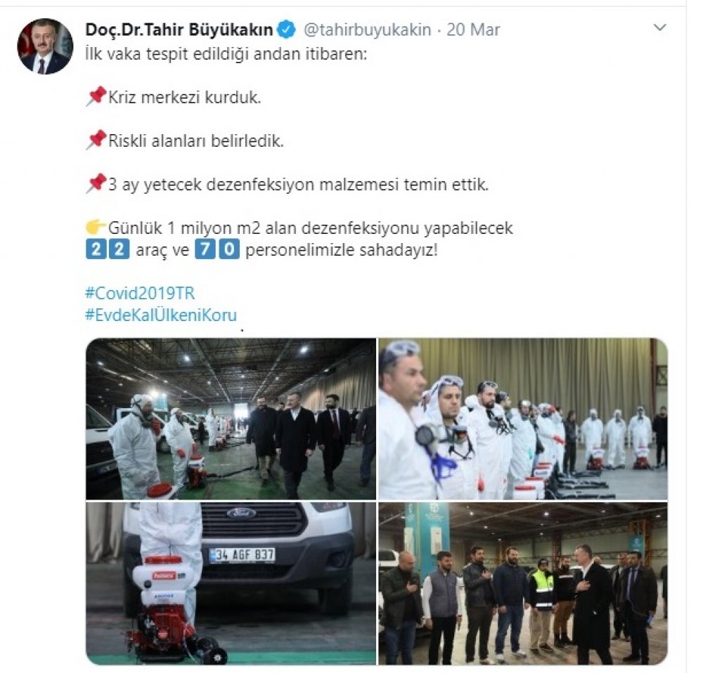 Koronavirüs (Covid-19) Çin’in Vuhan kentinde görüldüğü andan itibaren hazırlıklara başlayan Kocaeli Büyükşehir Belediyesi, Türkiye’ye örnek oldu. Vatandaşların huzur ve güvenliği için gece gündüz çalışmaya devam eden ve gece gündüz dezenfekte işlemleri yapan Büyükşehir, ilçe belediyelerinden ilgili Belediye Başkan Yardımcıları ve teknik birim sorumlularından oluşan koordinasyon ekibi kurdu. Ayrıca Büyükşehir Belediyesi dezenfeksiyon hizmetleri Sağlık ve Sosyal Hizmetler Daire Başkanlığı bünyesinde Kriz Koordinasyon Merkezi oluşturdu. Büyükşehir Belediye Başkanı Doç. Dr. Tahir Büyükakın da vatandaşların huzuru ve gelecek kaygısı duymaması adına bir dizi önlem alırken toplum sağlığı için fedakârca mücadele eden sağlık çalışanlarını da unutmadı.
