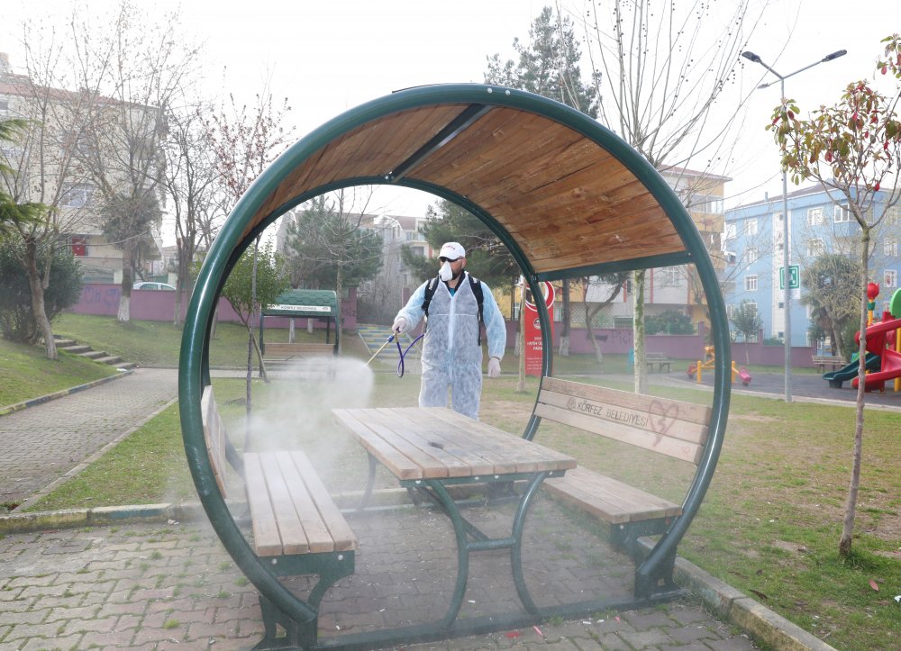 Türkiye’de ilk korona virüsü olayının açıklanmasının ardından harekete geçen Körfez Belediyesi, kamu kurumları, ibadethaneler, parklar, duraklar, bankamatikler, üst geçitler, halkın yoğun olarak kullandığı alt geçitler ve çöp bidonlarını dezenfekte çalışmasını kesintisiz sürdürüyor.