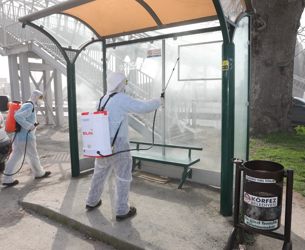 Körfez Belediyesi olarak ilk günden itibaren gerekli tedbirleri aldıklarını ifade eden Belediye Başkanı Şener Söğüt, “Ekiplerimizle istişare ederek toplu kullanılan alanlarda özellikle kamu kurumları, ibadethaneler, duraklar ve parklarda dezenfeksiyon çalışmalarını iki katına çıkarttık. Bunun yanında Büyükşehir Belediyemiz ile koordineli bir şekilde ilçemizde hizmet veren halk otobüslerininde dezenfeksiyon çalışmalarını yapıyor ve takip ediyoruz. Halkımız bu konuyla ilgili hassasiyetlerini muhafaza etsinler. Bizim gerekli tedbirleri aldığımızdan da emin olsunlar.” İfadelerini kullandı.
