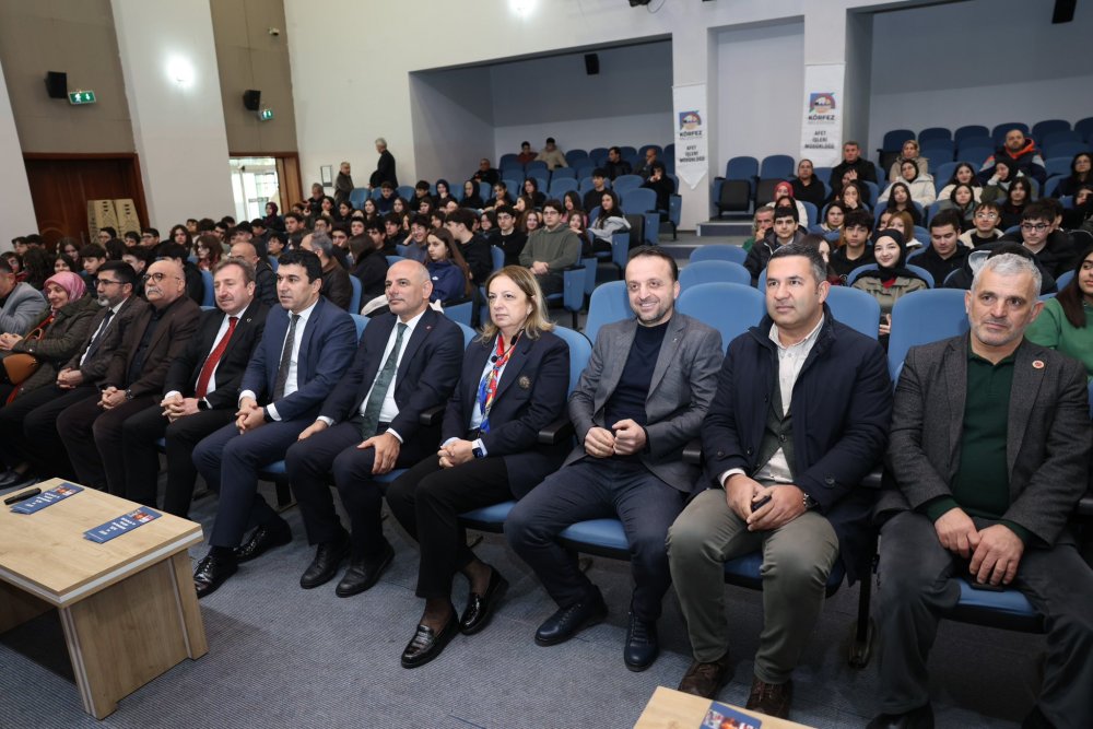 İlçe Milli Eğitim Müdürü Sergülen Kurt’un yaptığı kısa selamlama konuşması sonrasında kürsüye gelen Başkan Şener Söğüt, “Deprem kuşağında, deprem gerçeğiyle iç içe yaşayan bir ülkenin evlatları olarak hepimiz biliyoruz ki bunlara hazırlıklı olmalıyız. Bugün, bu konuda bilinçlenme ve ne yapılması gerektiğini konuşmak için buradayız. Hepimiz biliyoruz ki özellikle hafızalarımızda derin izler ve acılar bırakan depremi yaşamış bir şehir olarak, afet ve depremlere hazır olmalıyız.