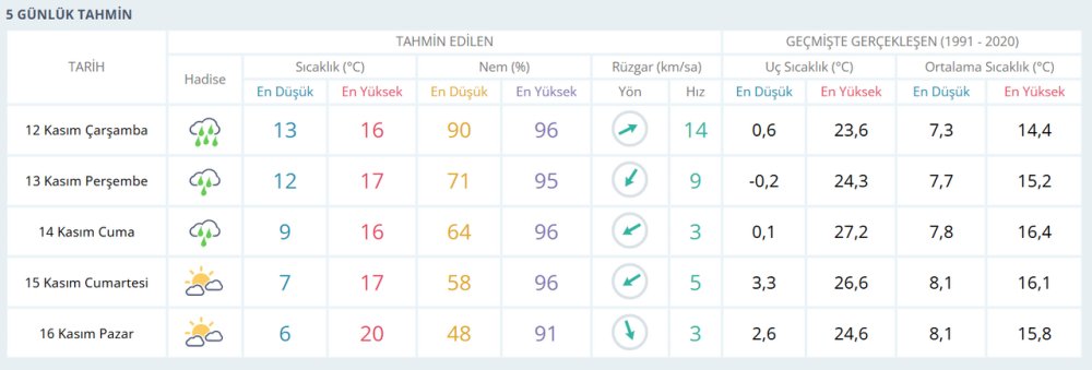 Haftanın son iş gününde yağışların İç Anadolu’nun doğusu, Karadeniz, Doğu Anadolu’nun kuzey ve doğusu, Güneydoğu Anadolu, Orta ve Doğu Akdeniz, ayrıca Sakarya ve Kocaeli çevrelerinde etkili olacağı tahmin ediliyor.