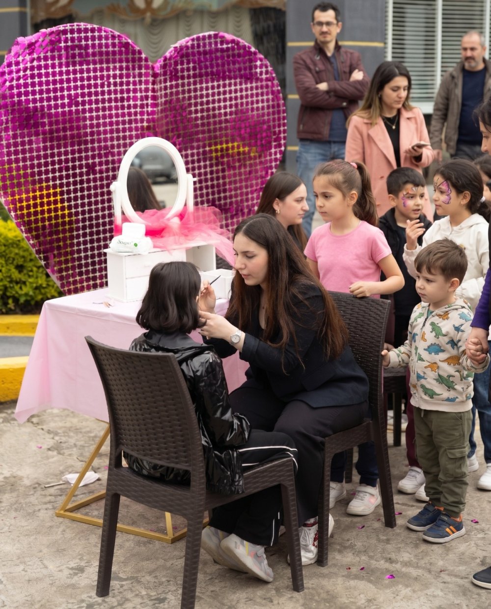 Etkinlik alanında kurulan stantlarda çocuklar; yüz boyama ve glitter uygulamalarıyla eğlenirken, palyaçolar eşliğinde keyifli anlar yaşadı.