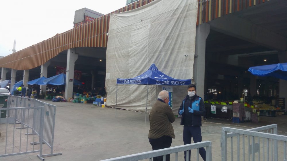 İçişleri Bakanlığı tarafından vatandaşların sağlığı için çıkarılan genelge kapsamında kalabalık olan pazar yerlerine çocuk ve 65 yaş üstü vatandaş alınmıyor. İzmit ilçesinde bugün kurulan Perşembe Pazarı’na da Büyükşehir Belediyesi ve İzmit İlçe Belediye Zabıta ekipleri tarafından yapılan müşterek denetimlerde çocuk ve 65 yaş üstü vatandaşlar pazara alınmadı.