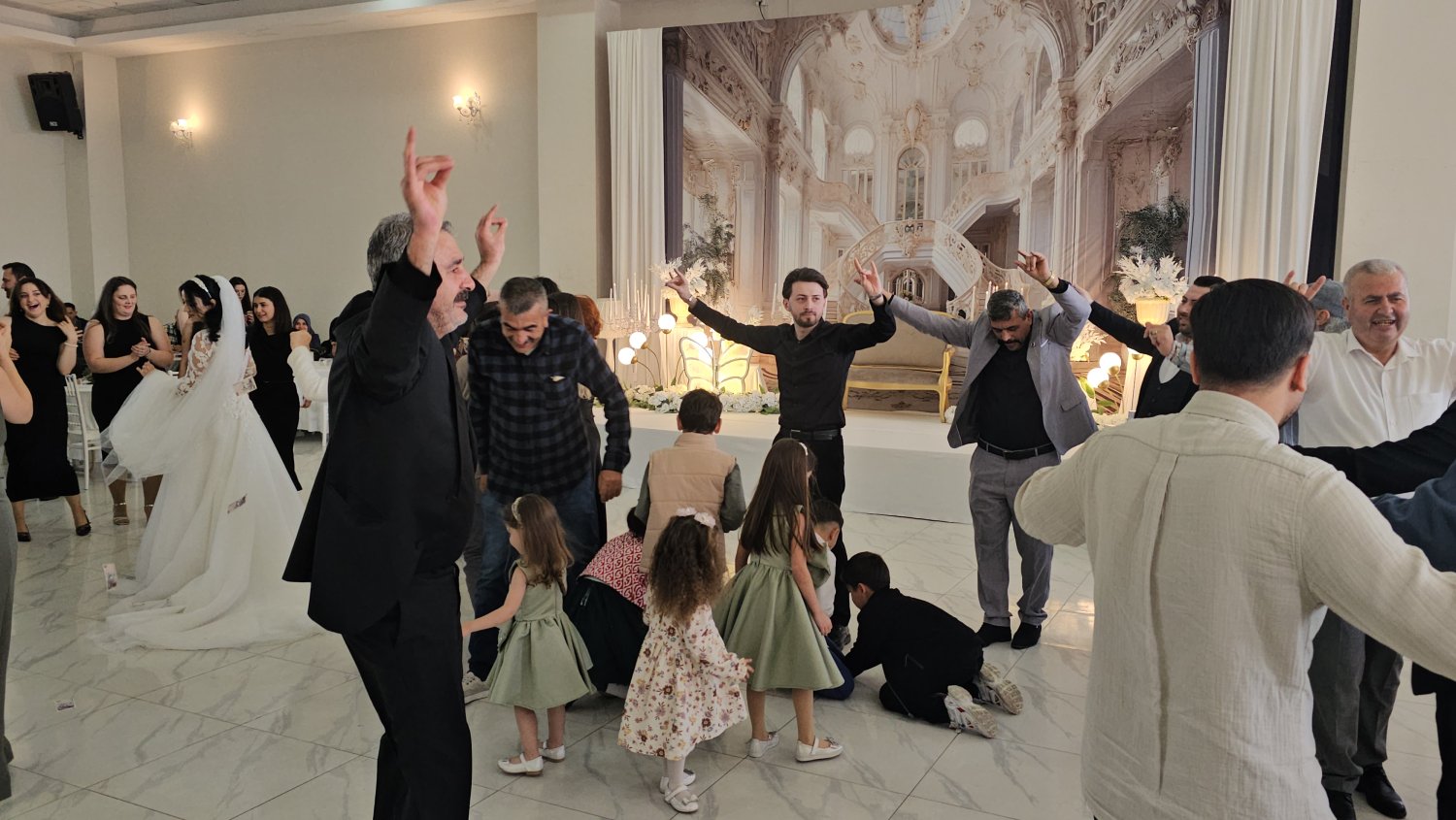 Yenikent Sosyal Tesisleri’nde düzenlenen düğünde genç çiftin mutluluğuna aileleri, meslektaşları ve çok sayıda davetli ortak oldu. Düğün boyunca genç sağlık çalışanlarının üzerine adeta para yağdı, renkli görüntüler yaşandı.