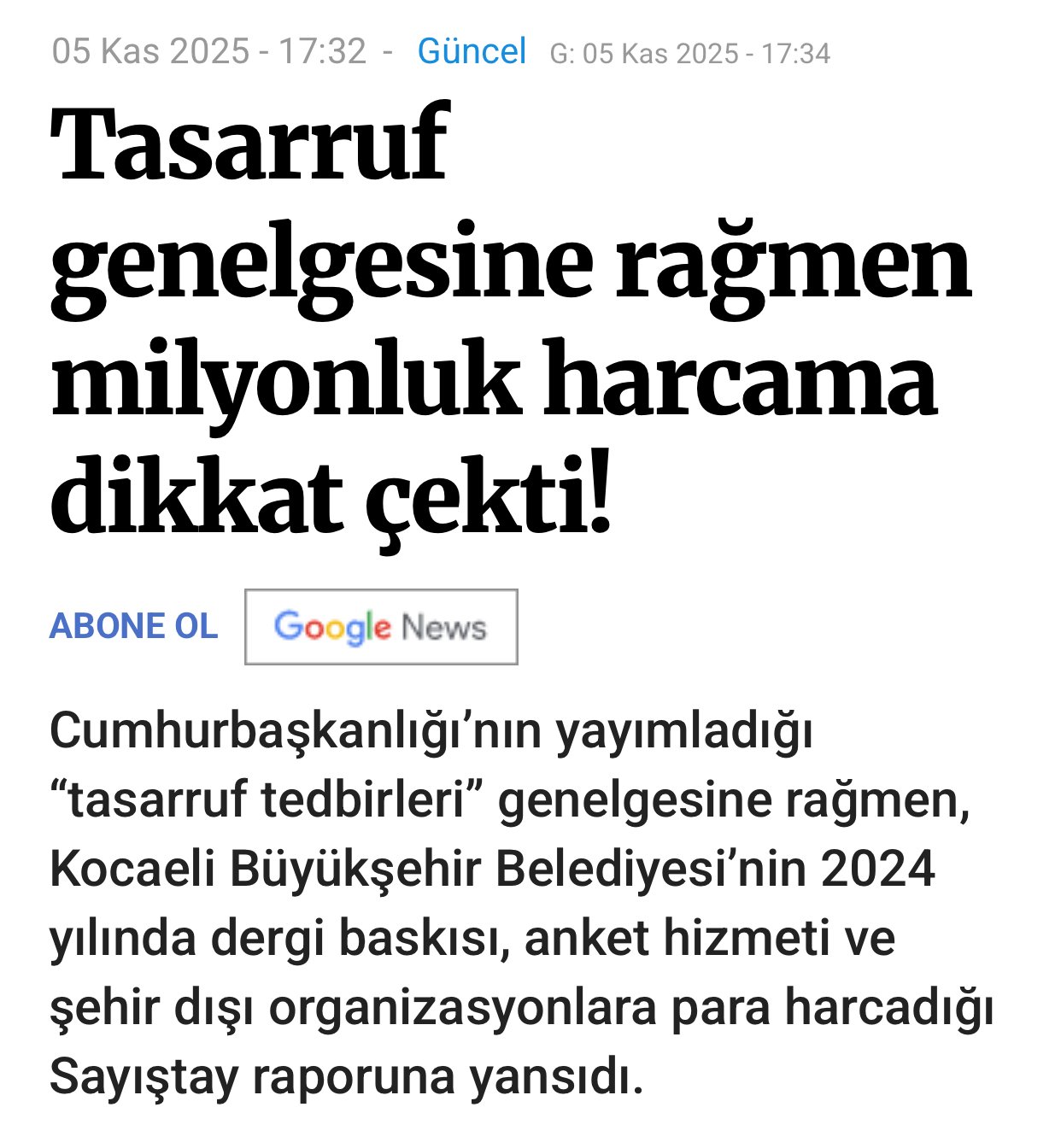 Tamyüksel, rapor sonrası somut adımların kamuoyuna açıklanmadığını belirterek, “Denetim raporları raflara kaldırılmak için yazılmaz. Gereği yapılmak için yazılır. Kocaeli Büyükşehir Belediyesi’nin bütçesi propaganda bütçesi değildir, bu bütçe milletin bütçesidir. Eğer gereği yapılmışsa açıklayın, yapılmadıysa gereğini yapın.” ifadelerini kullandı.