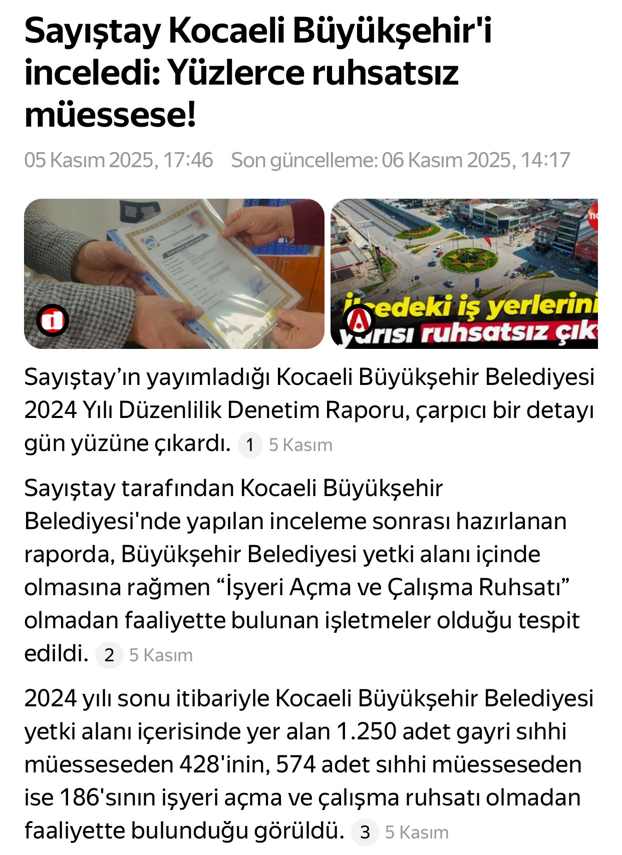 Tamyüksel, Sayıştay denetim raporunda Kocaeli Büyükşehir Belediyesi’ne ilişkin çeşitli mali ve idari eksiklikler tespit edildiğini belirtti.