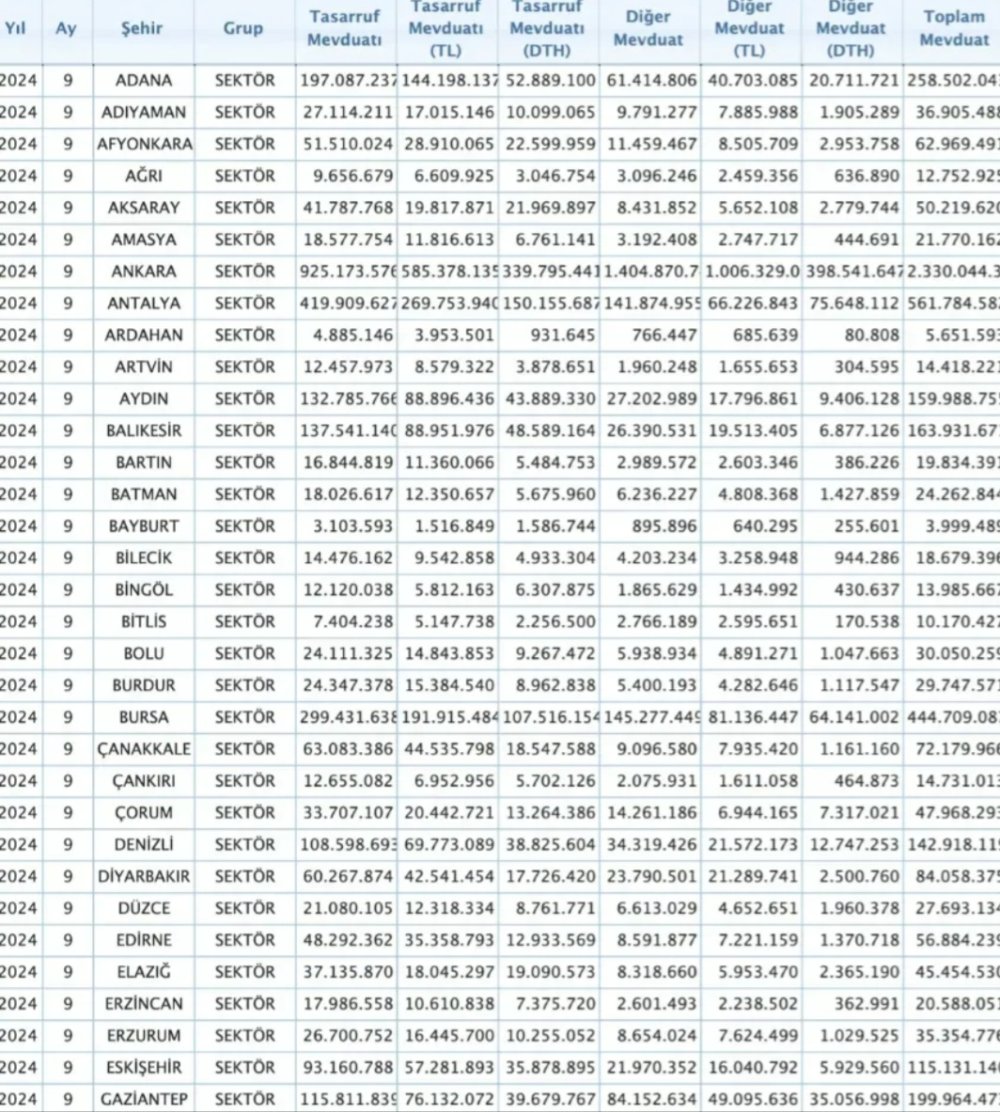 BDDK’nın verileri, Türkiye'nin büyük şehirlerinin yanı sıra bazı illerin son dönemde önemli bir ekonomik gelişim kaydettiğini de ortaya koydu. Örneğin, Adana, Muğla ve Konya gibi şehirler, önceki yıllara göre ciddi bir sıçrama yaparak çok daha yüksek sıralara yerleşti. Bu gelişme, yerel ekonomi ve bankacılık sektörü için umut verici bir gelişme olarak değerlendiriliyor.