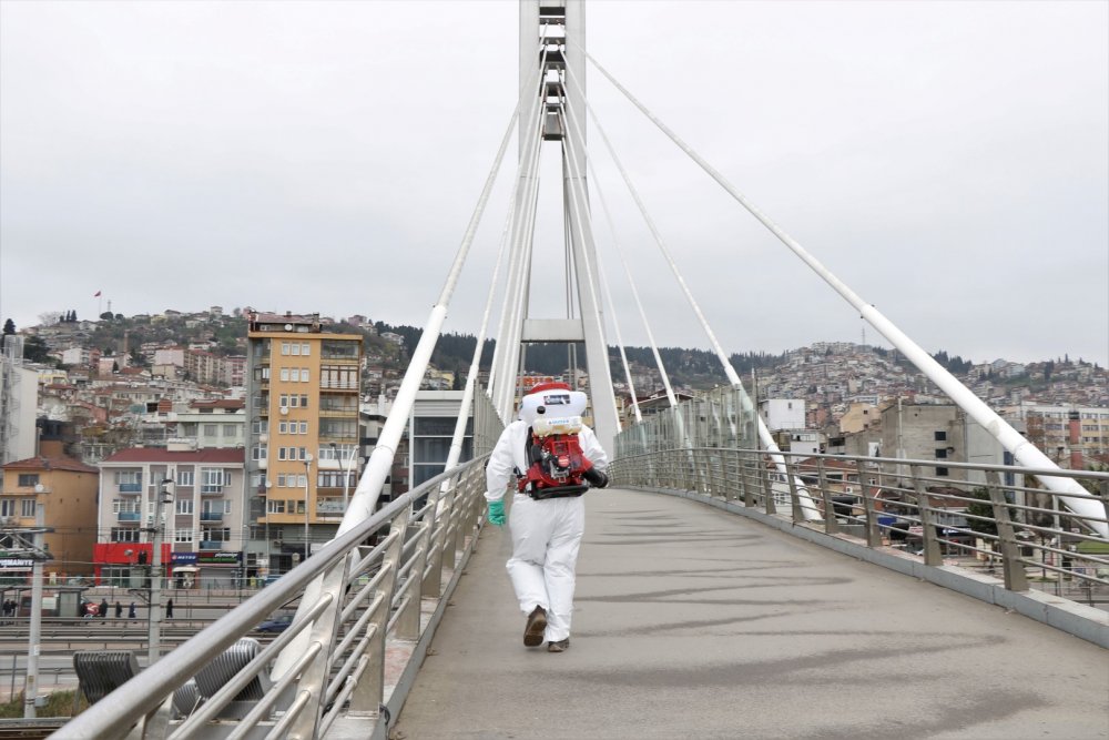 Çin’de ortaya çıkan ve tüm dünyaya hızlı bir şekilde yayılan koronavirüse karşı Büyükşehir halkın ortak kullanım alanları olan otobüsleri, durakları, taksileri, kamu kurumları gibi yerlerin yanına üstgeçitleri de dâhil etti. Sağlık ve Sosyal Hizmetler Dairesi Başkanlığı Veteriner Hizmetleri Şube Müdürlüğüne bağlı ekipler, düzenli olarak üstgeçitleri dezenfekte etmeye başladı.