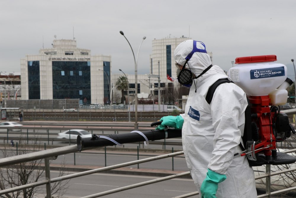 Etkisi giderek artan ve insan sağlığını olumsuz yönde etkileyen Covid-19 salgını sebebiyle Kocaeli Büyükşehir Belediyesi, dezenfeksiyon çalışmalarına tüm hızıyla devam ediyor. Bu kapsamda halkın yoğun olarak kullandığı üst geçitler dezenfekte edilmeye başlandı.