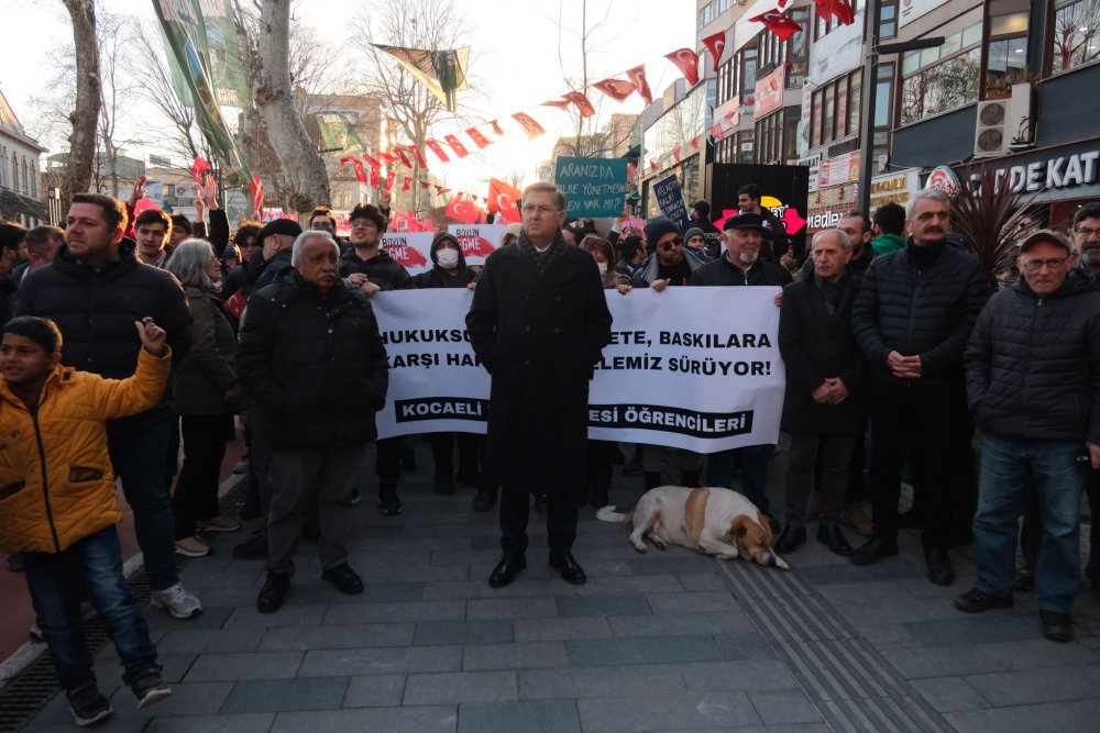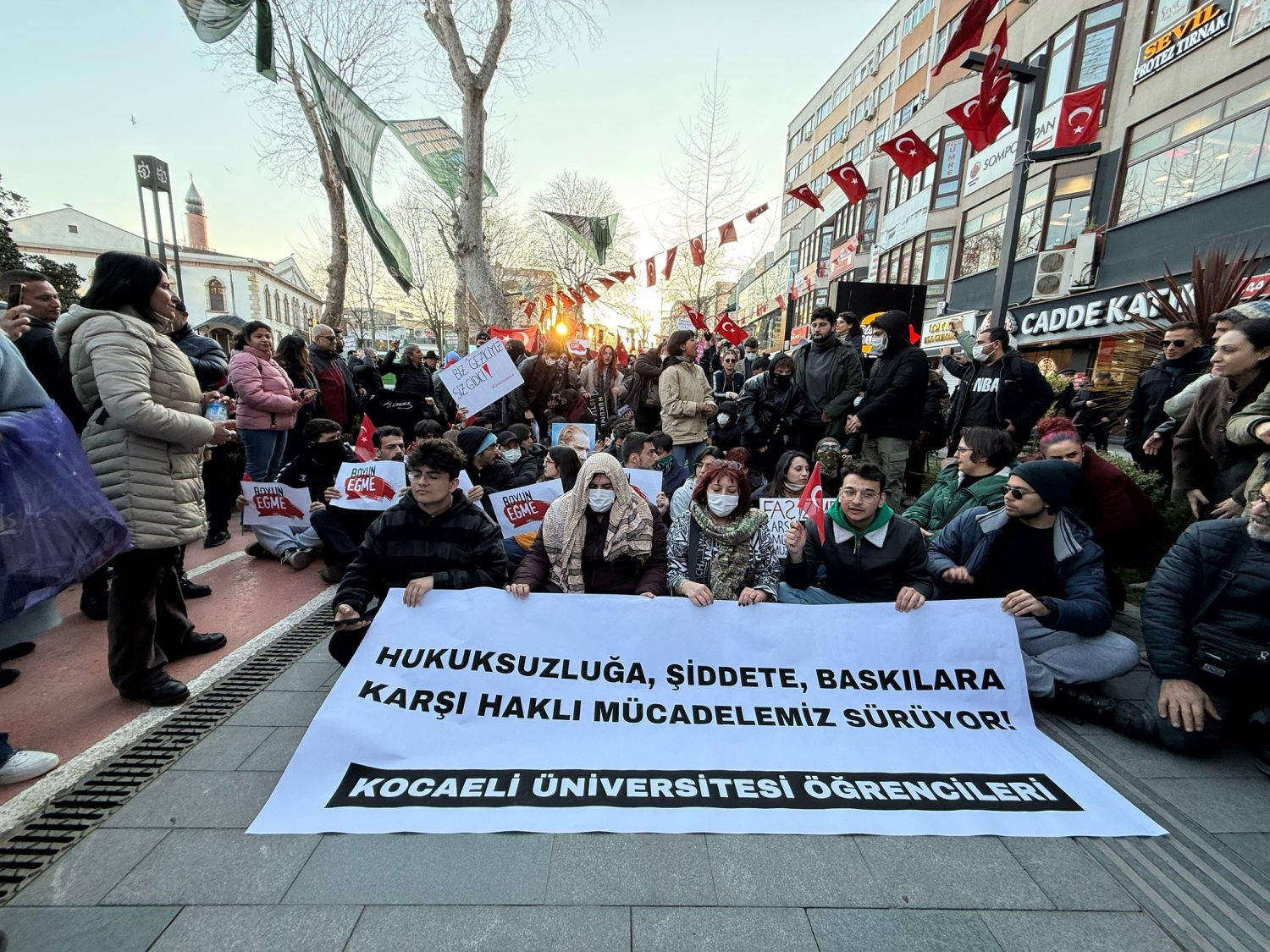 İstanbul Büyükşehir Belediye Başkanı Ekrem İmamoğlu’nun gözaltına alınmasının ardından başlayan protestolara, Kocaeli Üniversitesi öğrencileri de katıldı. Dün üniversite içinde düzenlenen eylemde 6 öğrencinin gözaltına alınmasının ardından, bugün bir grup öğrenci Belediye İş Hanı önünde bir araya gelerek taleplerini dile getirdi.