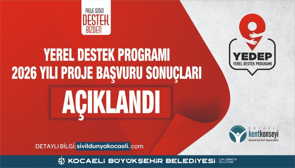 YEDEP 2026’ya gösterilen yoğun ilgi nedeniyle tüm STK’lara teşekkür edilirken, destek almaya hak kazanan kuruluşlara başarı dilekleri iletildi. Açıklamada ayrıca, “Hep birlikte daha katılımcı, daha duyarlı ve daha güçlü bir Kocaeli için çalışmaya devam ediyoruz” ifadelerine yer verildi.