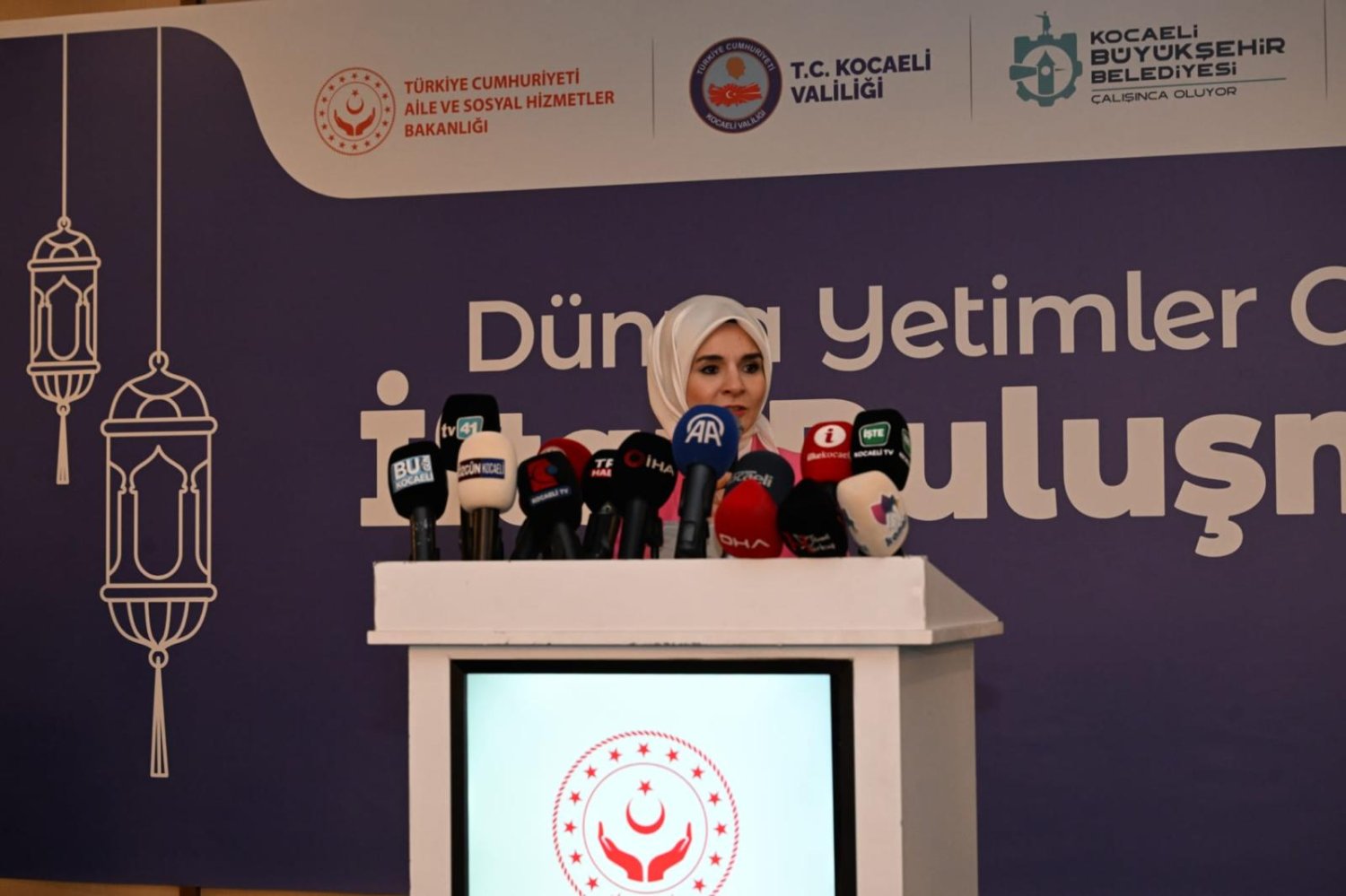 Kocaeli'de, "Dünya Yetimler Günü" dolayısıyla Aile ve Sosyal Hizmetler Bakanı Mahinur Özdemir Göktaş da katıldığı iftar yemeğinde Yetim çocuklar ve aileleri ile aynı sofrada buluştu. İftar organizasyonu duygusal anlara sahne olurken, programda konuşan Bakan Göktaş, "Yetimlerimiz asla yetim değildir. Onların yanında devlet ve bizler varız" dedi.