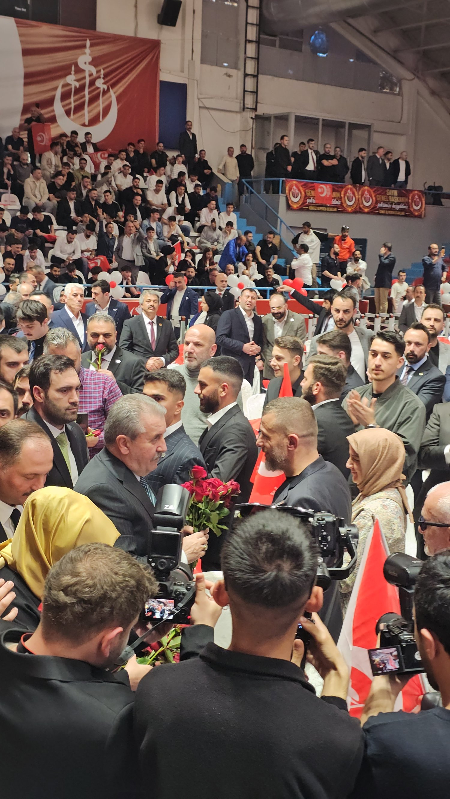Kongre salonu önünde toplanan partililer, Destici’yi çiçeklerle karşıladı. Alkışlar ve sloganlar eşliğinde salona giren Destici’ye sevgi gösterileri uzun süre devam etti. Yoğun ilgi nedeniyle salonda kısa süreli hareketlilik yaşanırken, görevliler düzenin sağlanması için yoğun çaba harcadı.