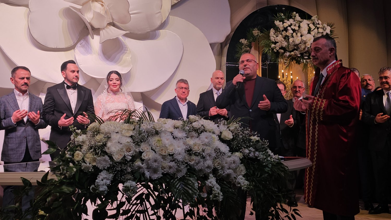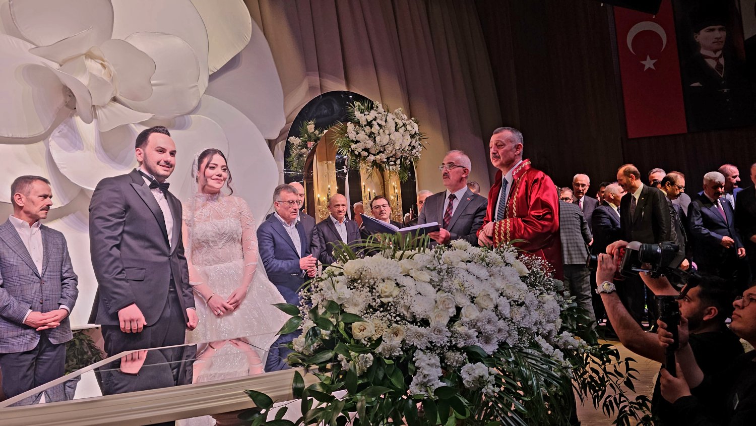 Kocaeli Kongre Merkezi’nde gerçekleştirilen nikâh törenine, Kocaeli protokolünün yanı sıra devlet protokolünün yoğun katılımıyla adeta büyük bir buluşmaya sahne oldu.Türkiye’nin dört bir yanından gelen siyasetçi, bürokrat ve iş dünyasının önde gelen isimleri, bu özel gün için Kocaeli’ne akın etti.
