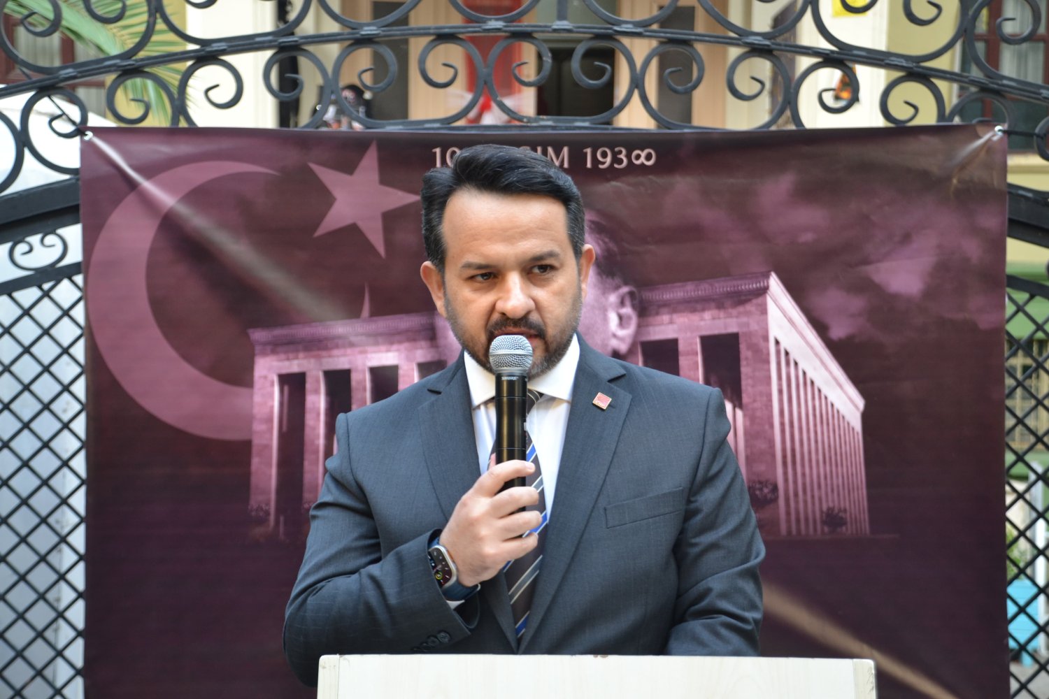 CHP İzmit İlçe Başkanı Gökhan Ercan, 10 Kasım’da Ulu Gazi İlkokulu’nda yaptığı konuşmada laik Cumhuriyet’in önemine vurgu yaptı.