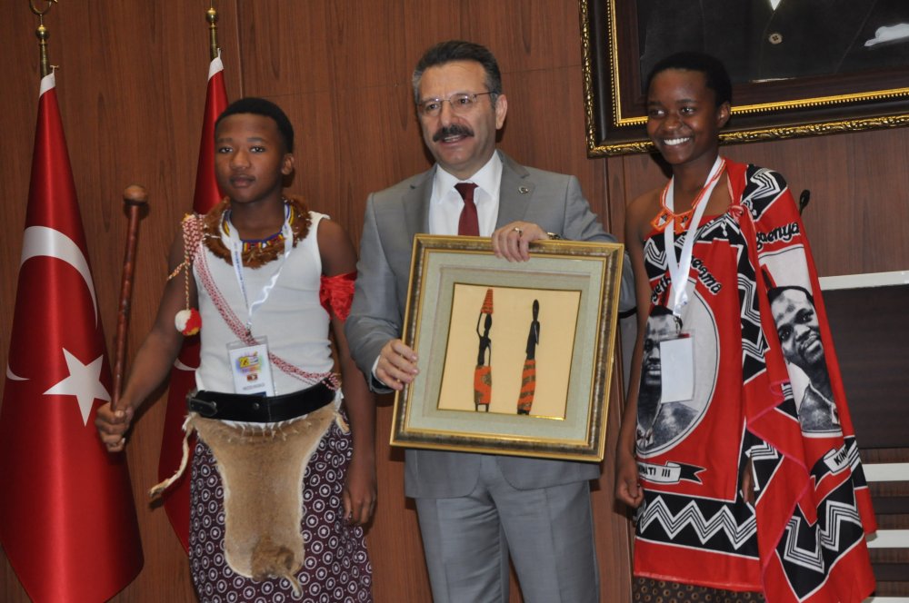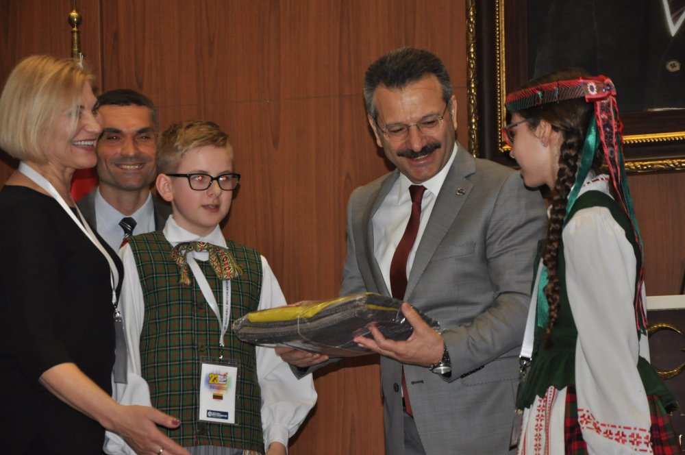 Vali Aksoy Kocaeli’den güzel anılarla ayrılmanızı diliyorum. Ülkemizi ve Kocaeli’yi bu kısa sürede birazda olsa tanıma fırsatı bulacaksınız. Bu birlikteliğin dünya barışına katkı sunmasını diliyorum. Kocaeli Türkiye’nin önemli bir şehri ve nüfus itibariyle 10. büyükşehridir. 1 milyon 906 bin nüfusa sahip. Asya ve Avrupa kıtalarının birleşme noktasında yer alan bir konumda. Ayrıca Karadeniz ve Marmara denizine kıyısı olan bir kent. Ayrıca Türkiye’nin en önemli sanayi kuruluşlarına ev sahipliği yapıyor. Umarım burada kaldığınız sürede kentimizi daha yakında tanıma fırsatı bulur, Kocaeli ve Türkiye ile ilgili güzel anılarla buradan ayrılmış olursunuz. Bizlere yaşattığınız güzel duygular nedeniyle teşekkür ediyor, ailelerinize selamlarımızı ve iyi dileklerimizi iletmenizi istiyorum dedi. 47 ülkeden gelen çocuklar Akçakoca salonunda gerçekleşen törende Vali Hüseyin Aksoy’a ülkelerinden getirdikleri hediyeleri takdim etti. Ardından günün anısına toplu fotoğraf çektirdi.