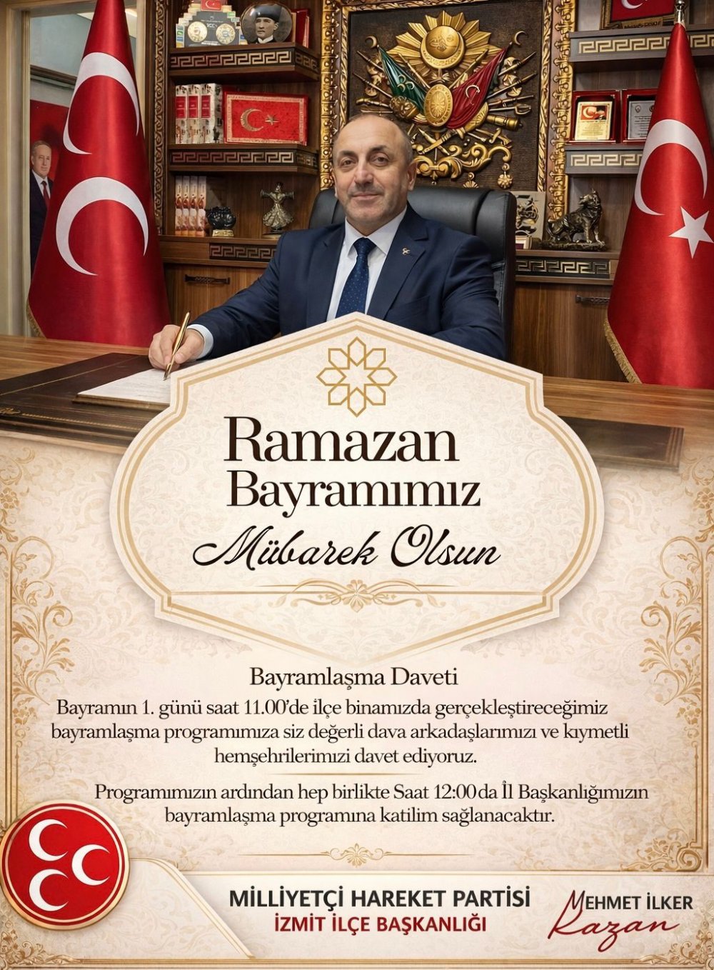 MHP İzmit İlçe Başkanı İlker Kazan, Ramazan Bayramı dolayısıyla hemşerilerine anlamlı bir mesaj yayımladı.